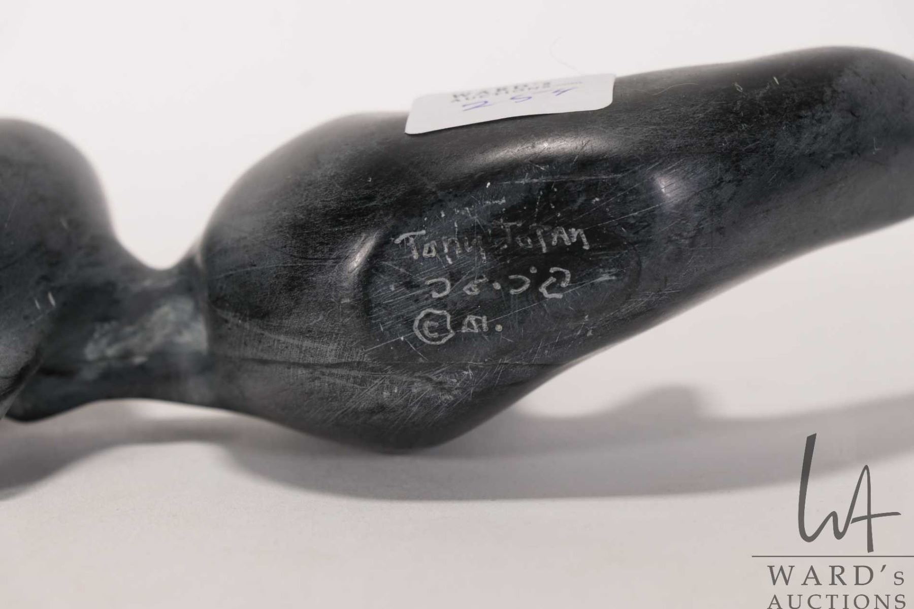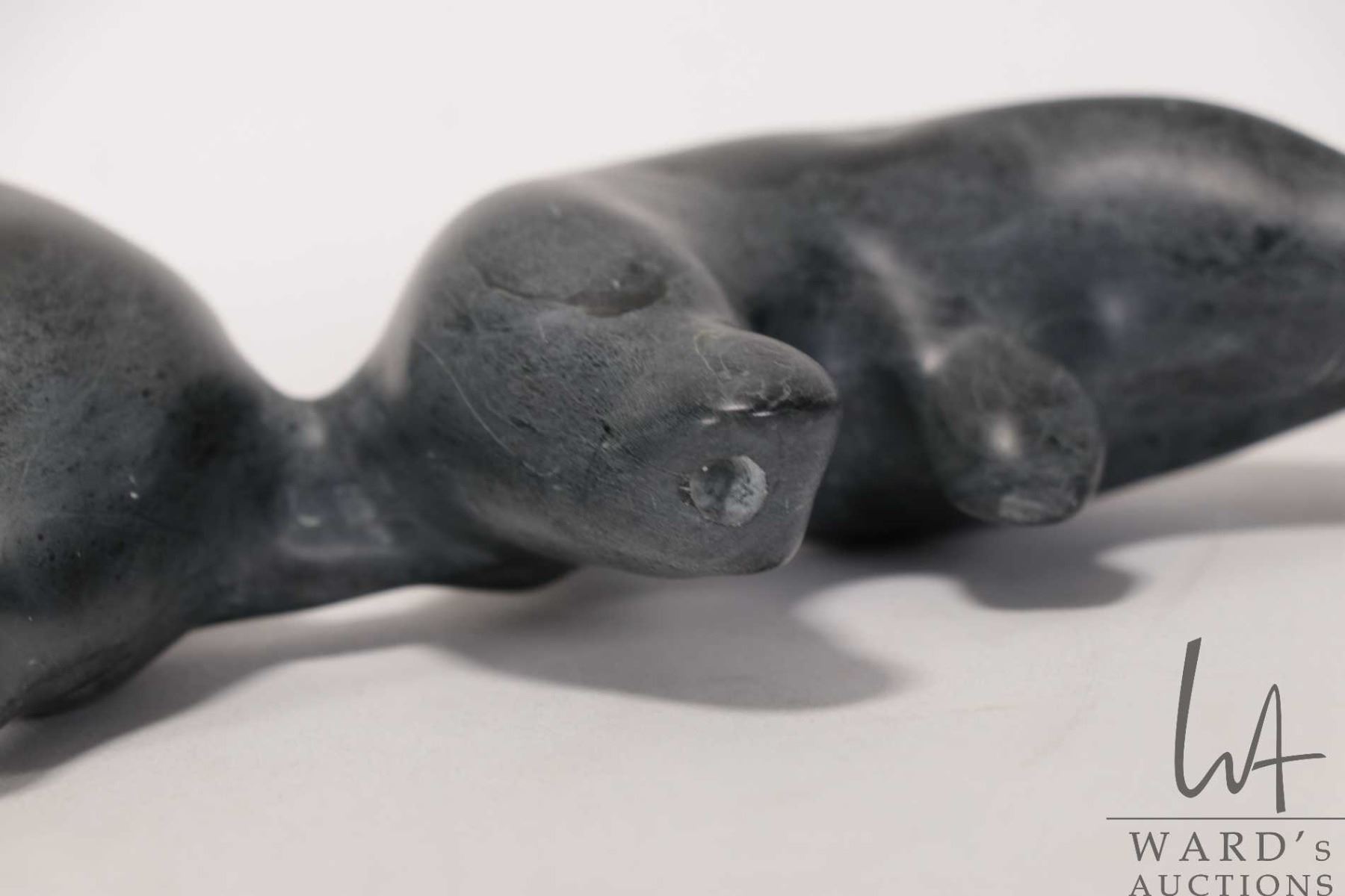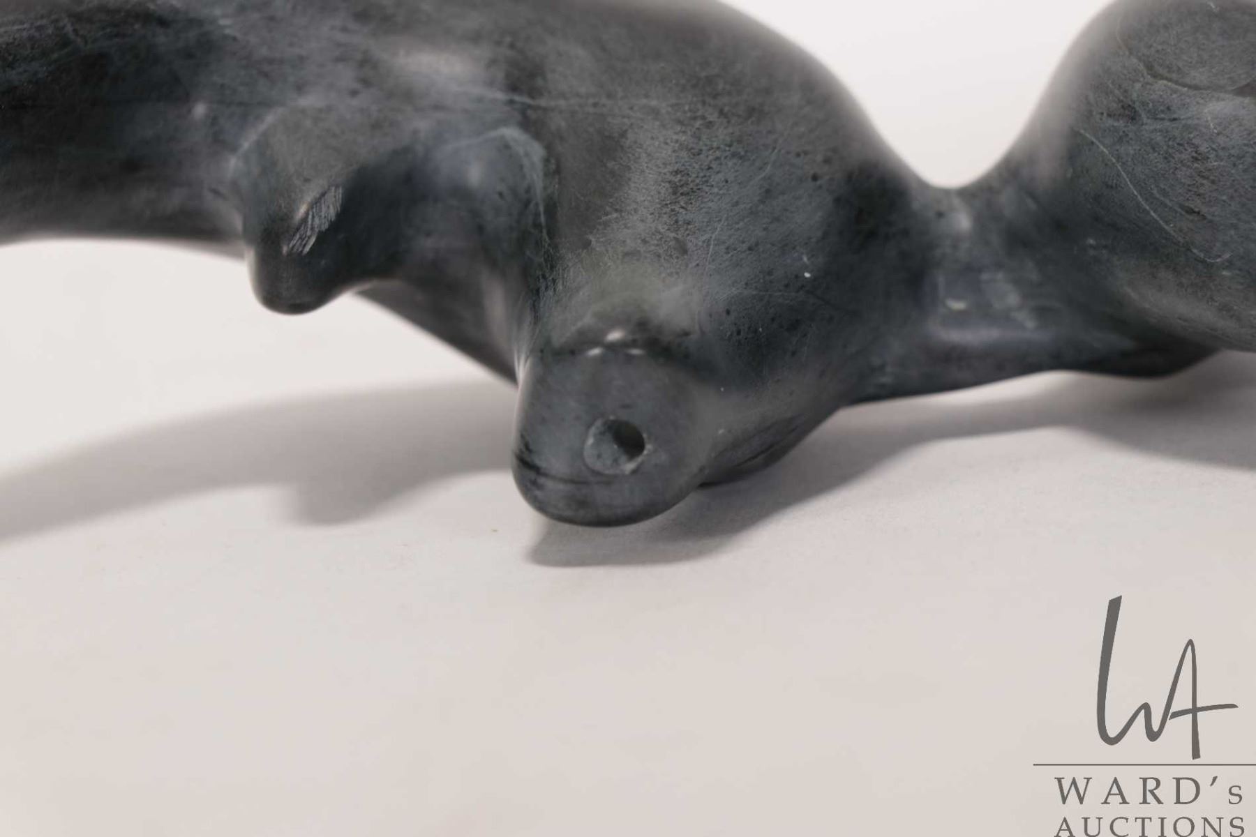 Tony Totan, Inuit carved soapstone whales 10 1/2" in length