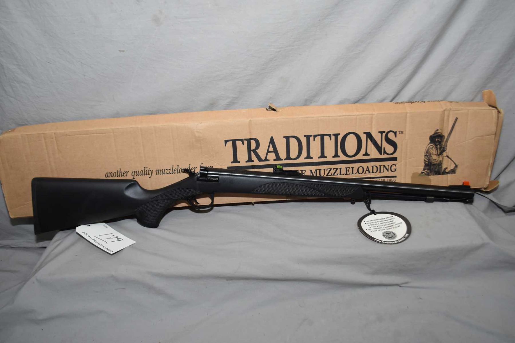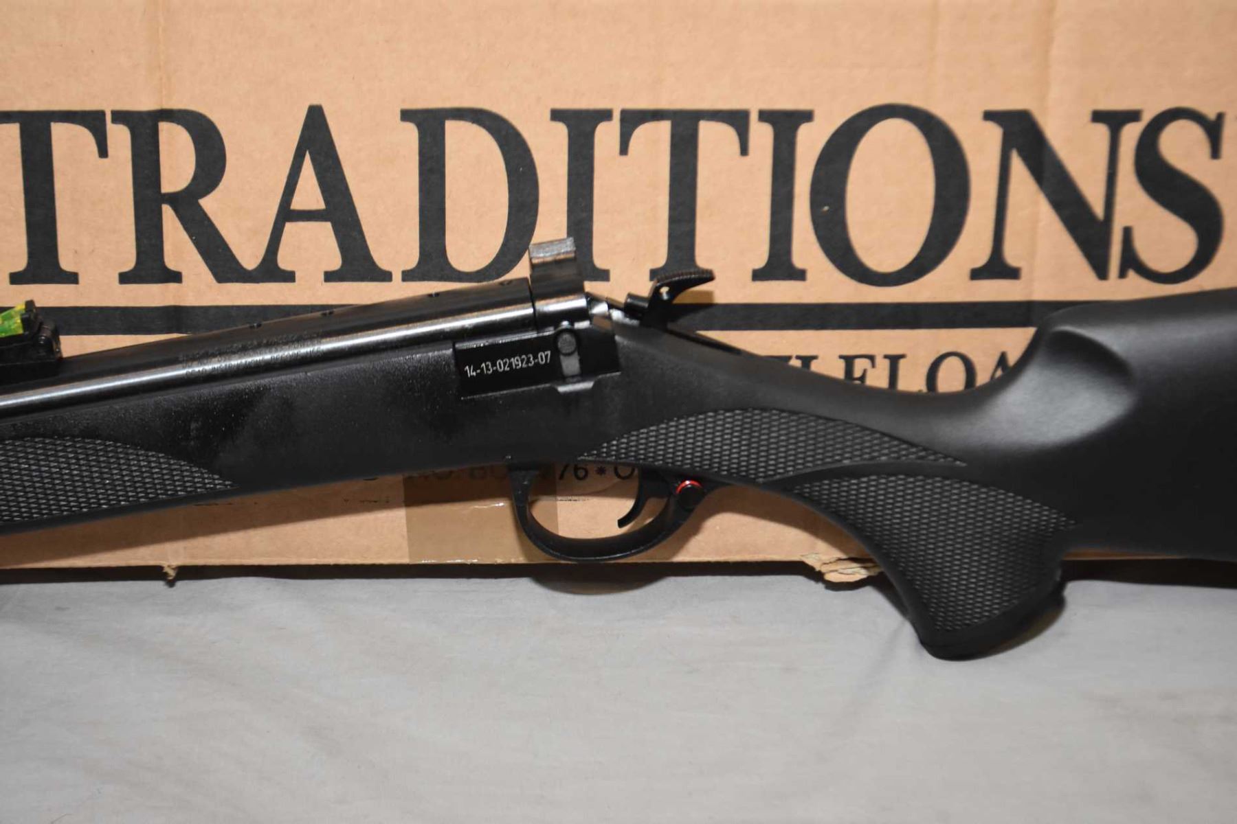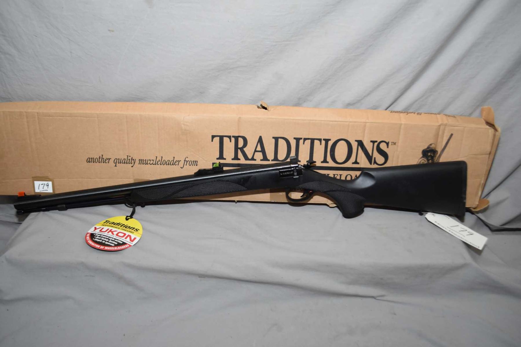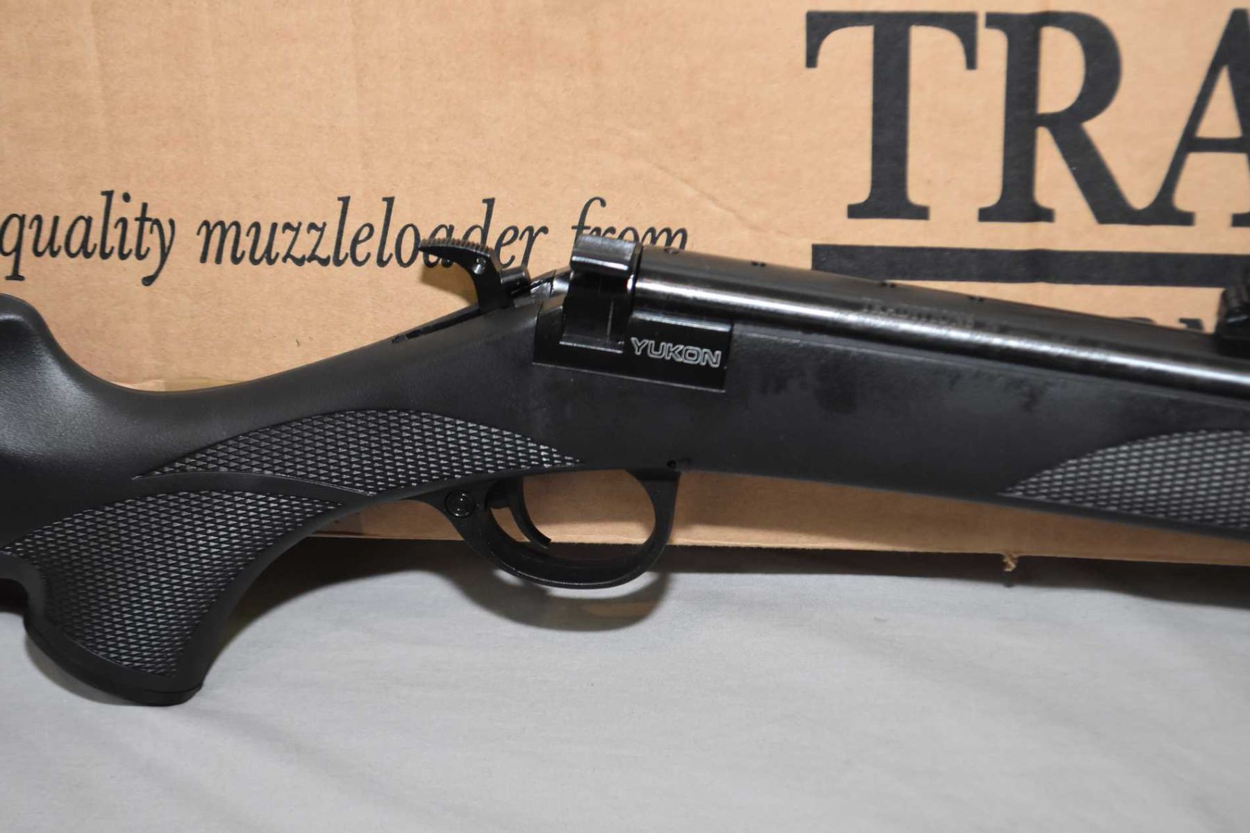 Traditions Model Yukon Drop Breach Action .50 Perc Cal Inline Black Powder Rifle w/ 24" bbl [ appears as new in original box w/ booklet, barrel tag, blued finish, barrel sights, also has 3 x 9 x 32 new scope in box, black composite pistol grip stock, w/ ramrod, and tool, etc. ] Ser # 14 - 13 - 021923 - 07