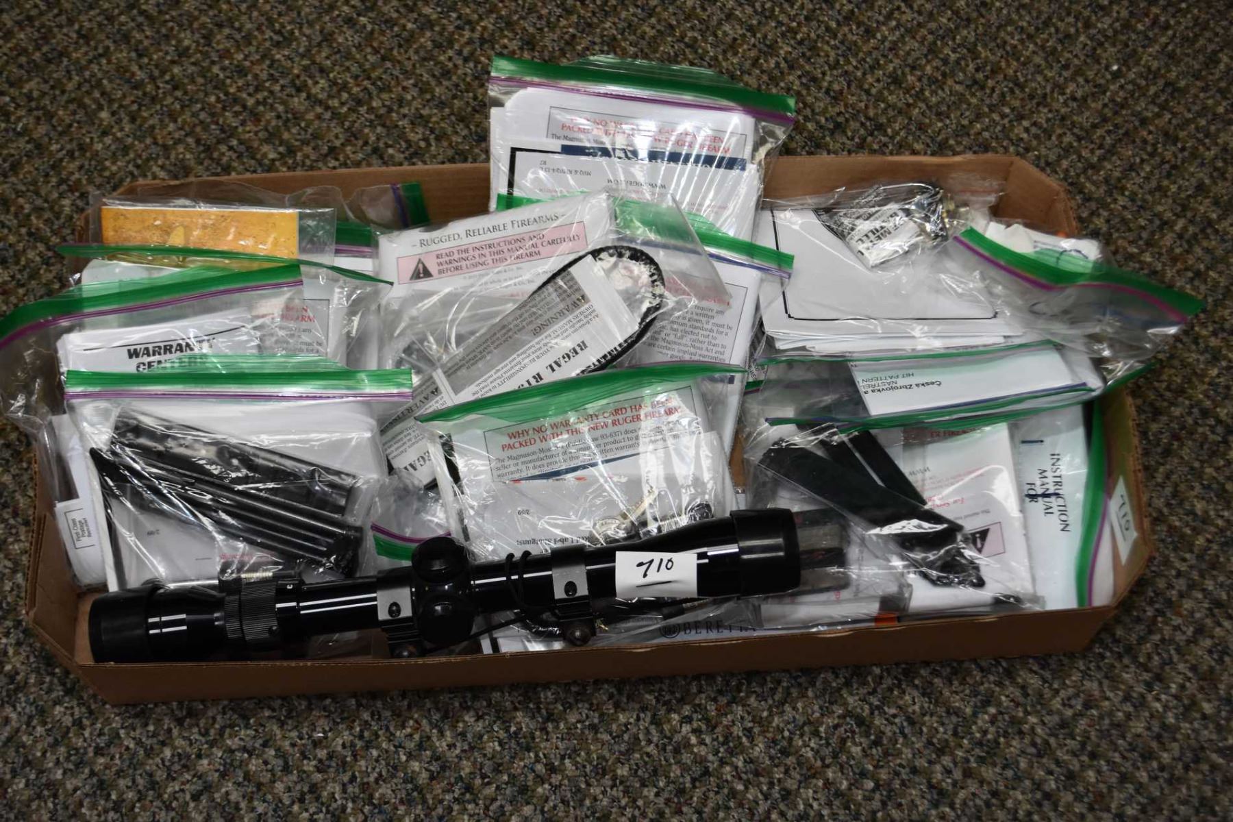 Tray Lot : Asstd Manuals, extra mags, etc. Tray Lot : Assortment of Manuals - extra mags - trigger locks - extra Ruger mags - cable locks - asstd locks - Ruko 3 x 9 - 32 Scope that appears good, etc.
