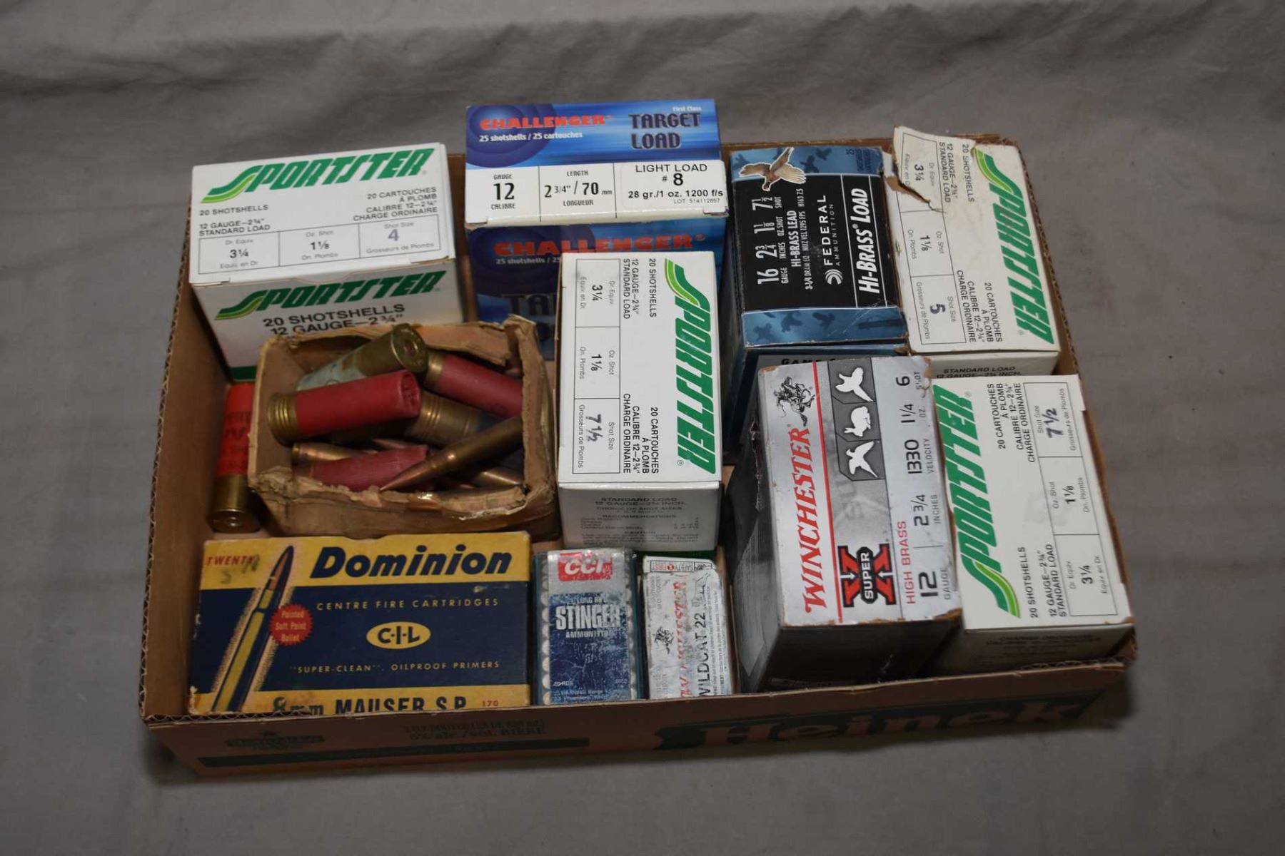 Tray Lot : Asstd Shot Shells - .12 Ga , .16 Ga., .20 Ga , - Box of .8 MM Maus Cal Ammo - Asstd. .22