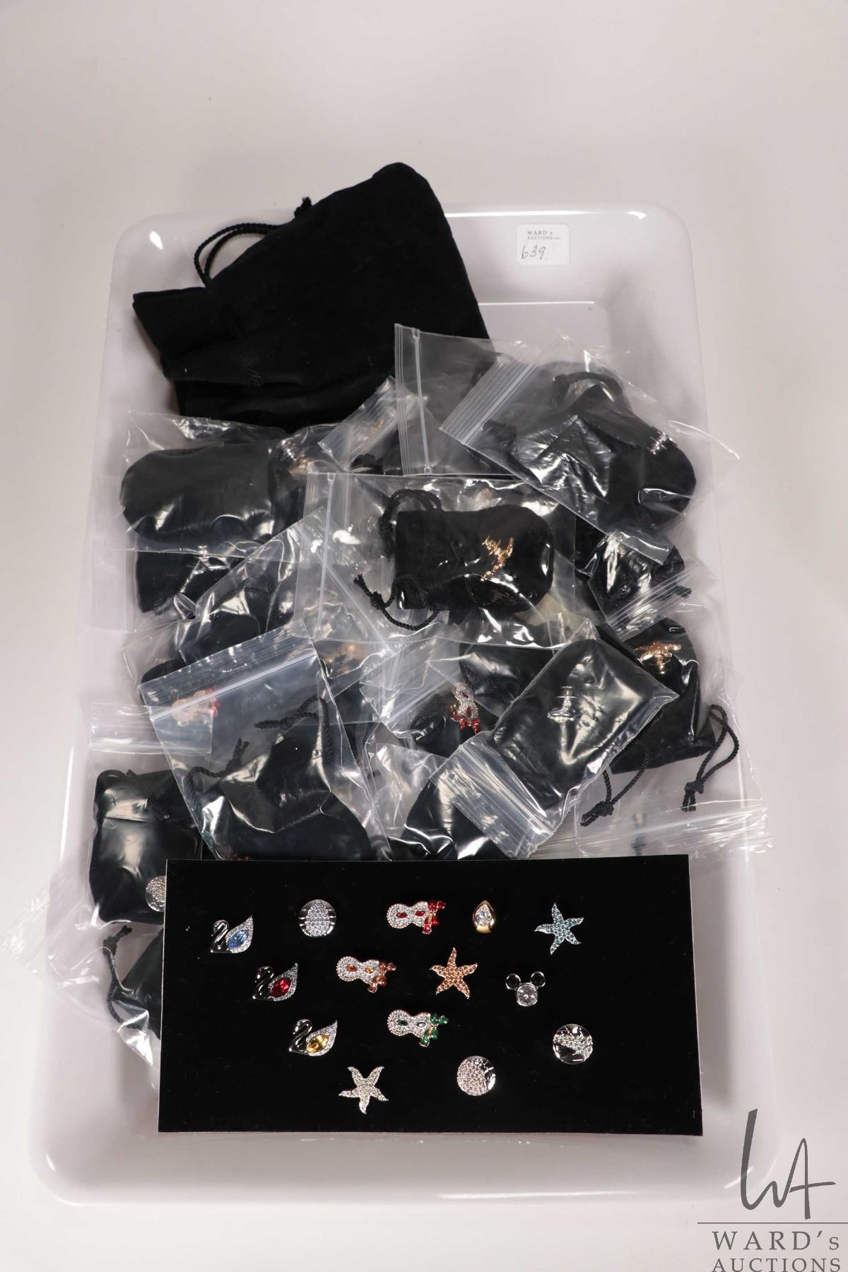 Tray lot containing 44 count of lapel pins each with individual black velvet bags