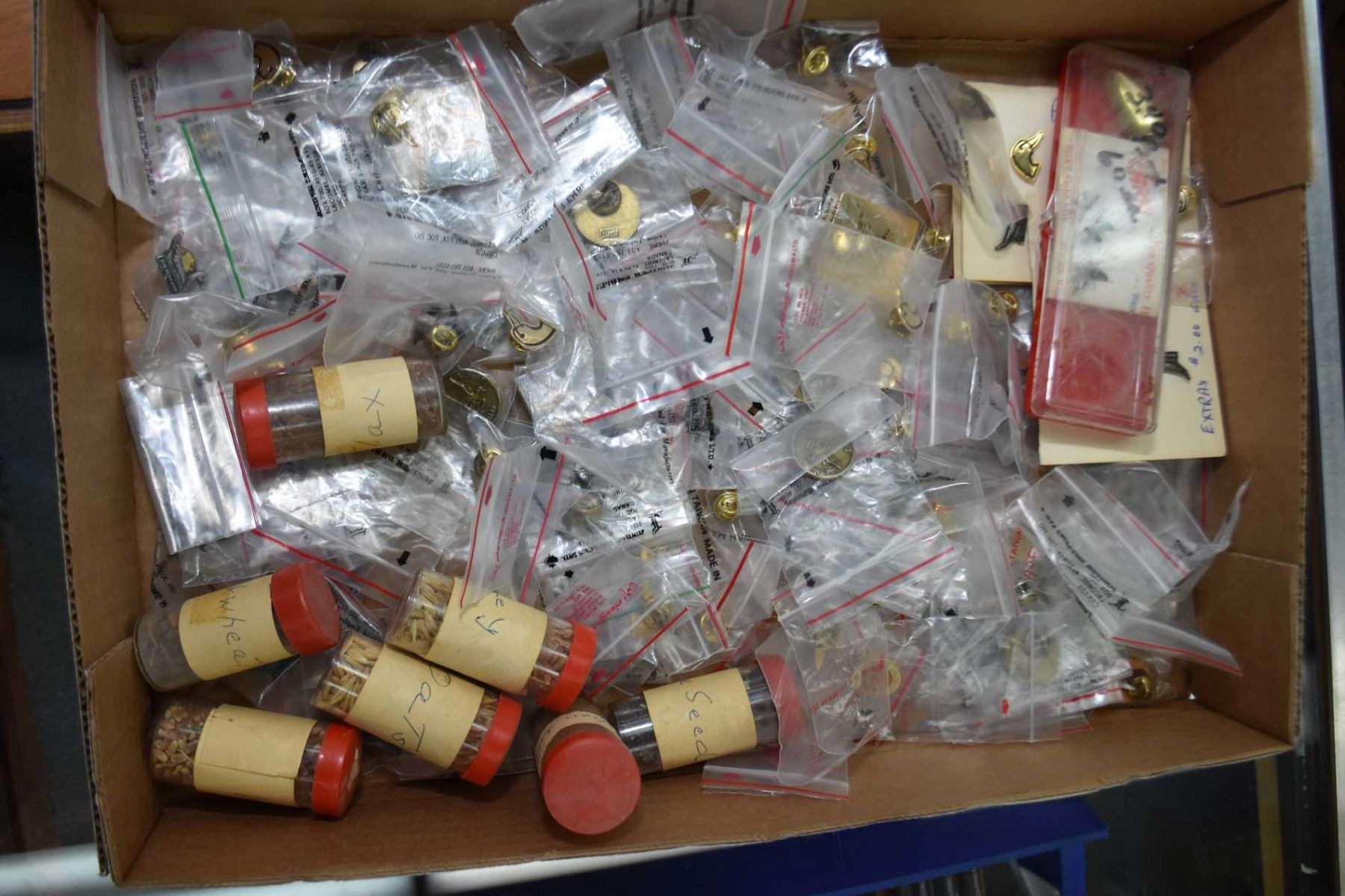 Tray lot of Duck's Unlimited pins, fishing hooks . Tray lot of Duck's Unlimited pins, fishing hooks etc.