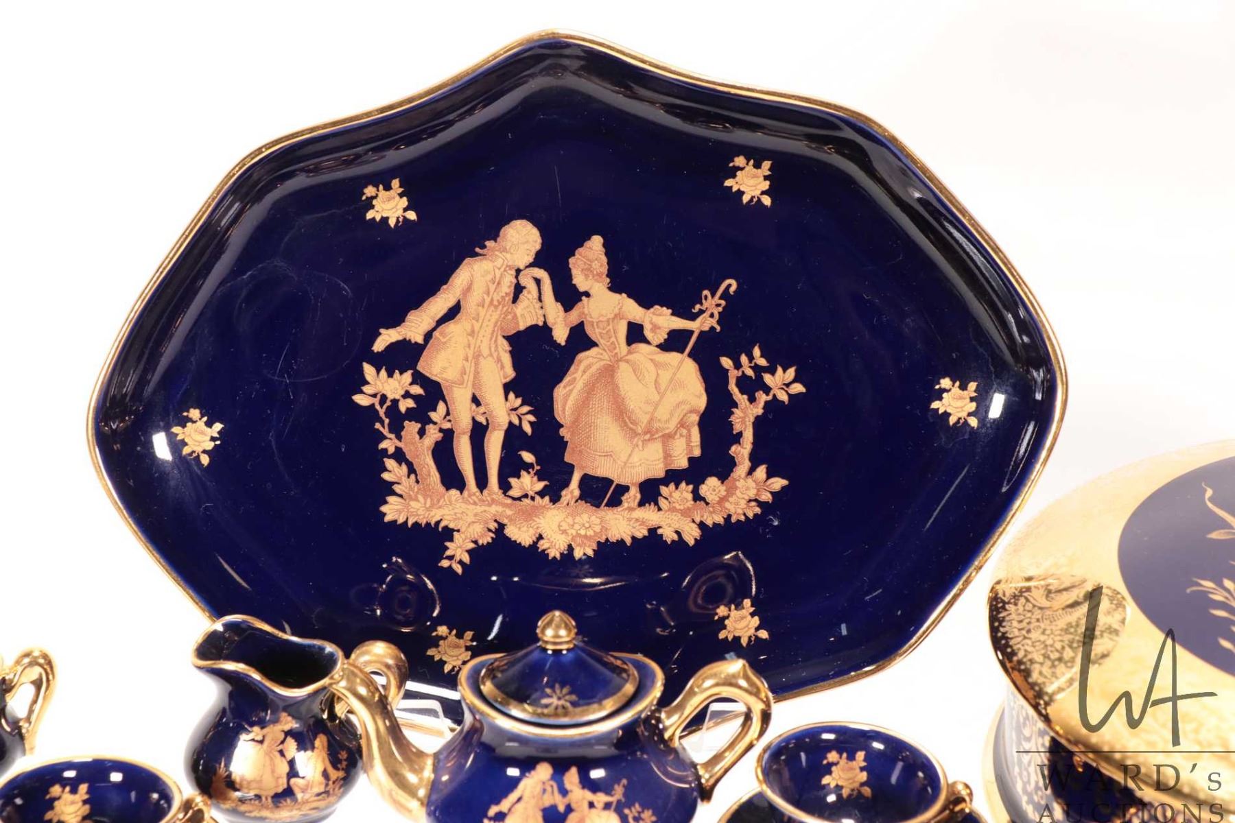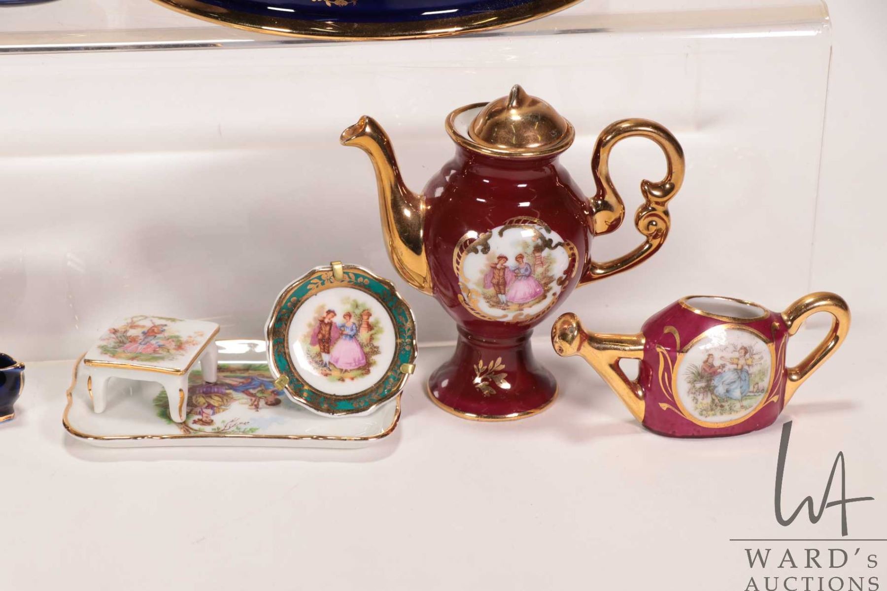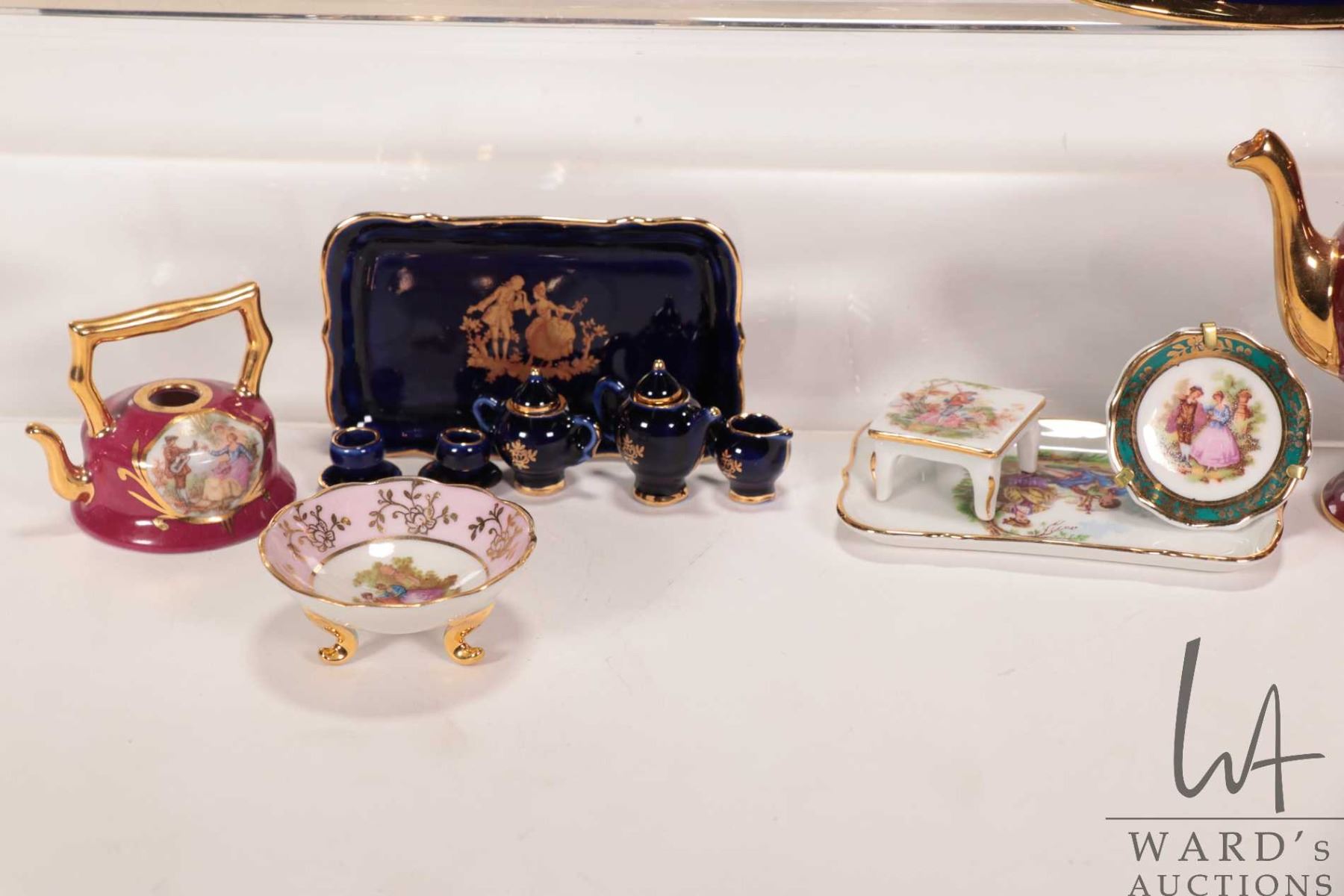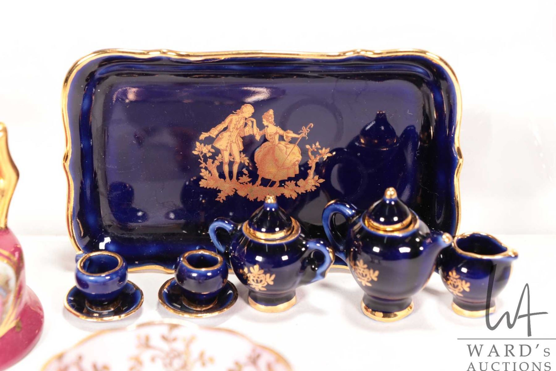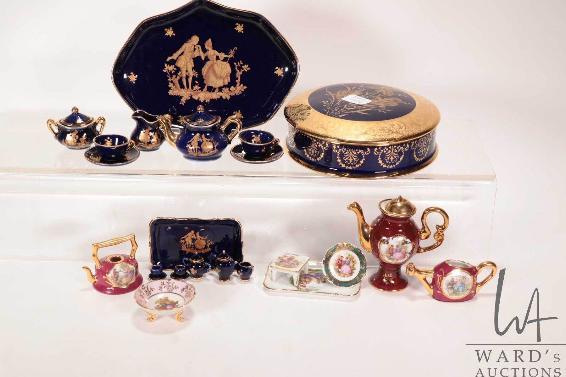 Tray lot of Limoges china including lidded trinket box, doll's tea sets, miniatures etc.