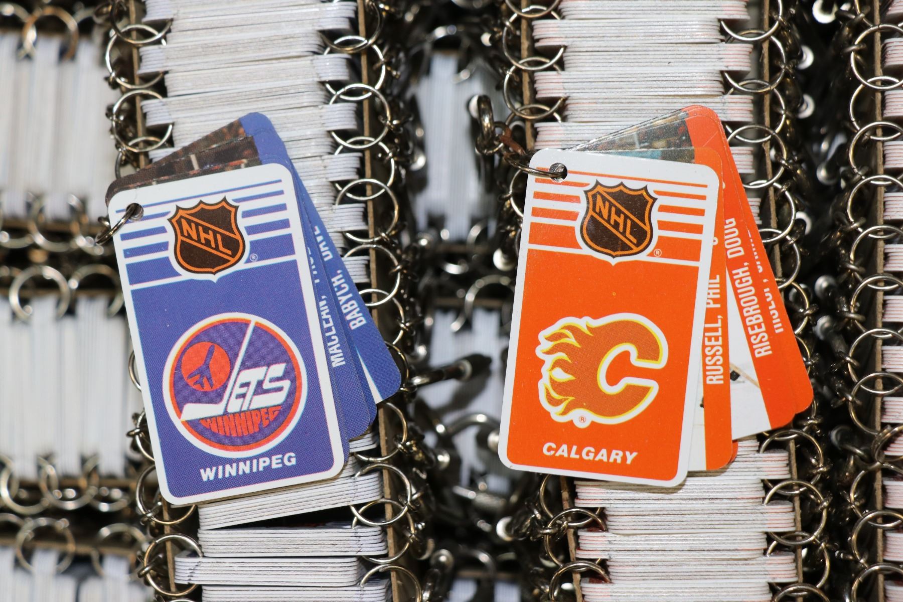 Tray lot of approximatly 750 NHL team key chains. Including primarily Winnipeg jets, Calgary Flames. Important: Pickup is in Edmonton. Long comic boxes (28 x 8 x 11.5 and 23kg) will be shipped in 2 boxes approximately 11 x 9 x 12 and 13kg each through Canada Post. Long boxes can be palletized for large invoices. Details to follow