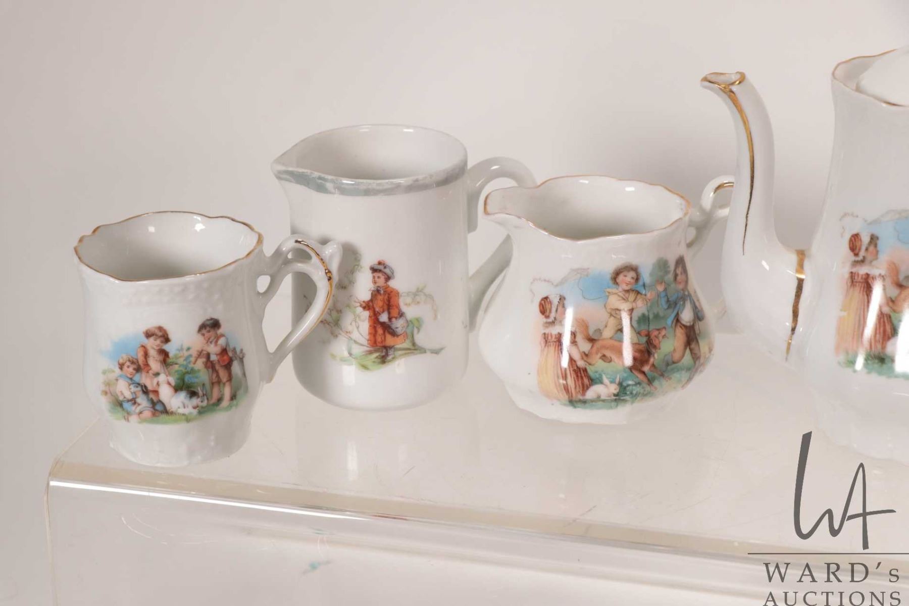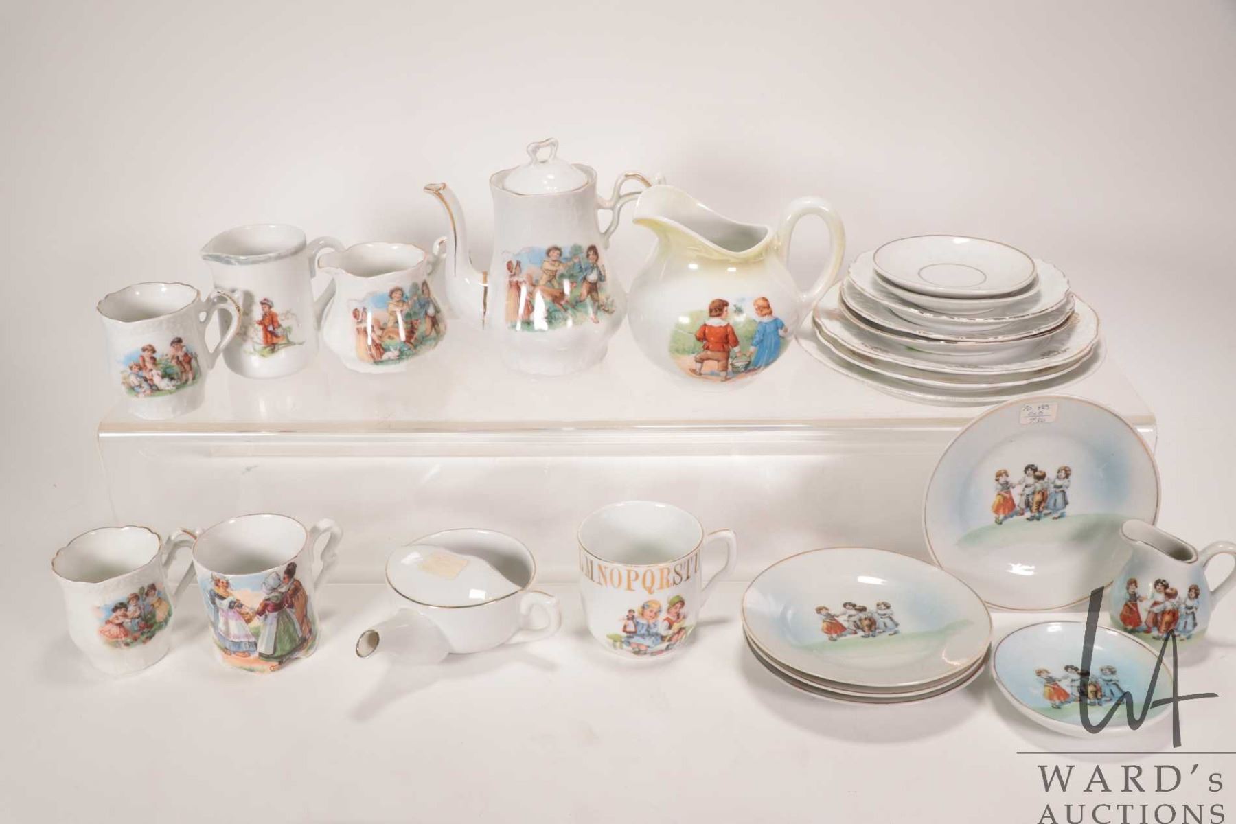 Tray lot of child's tea ware including alphabet and nursery rhyme theme