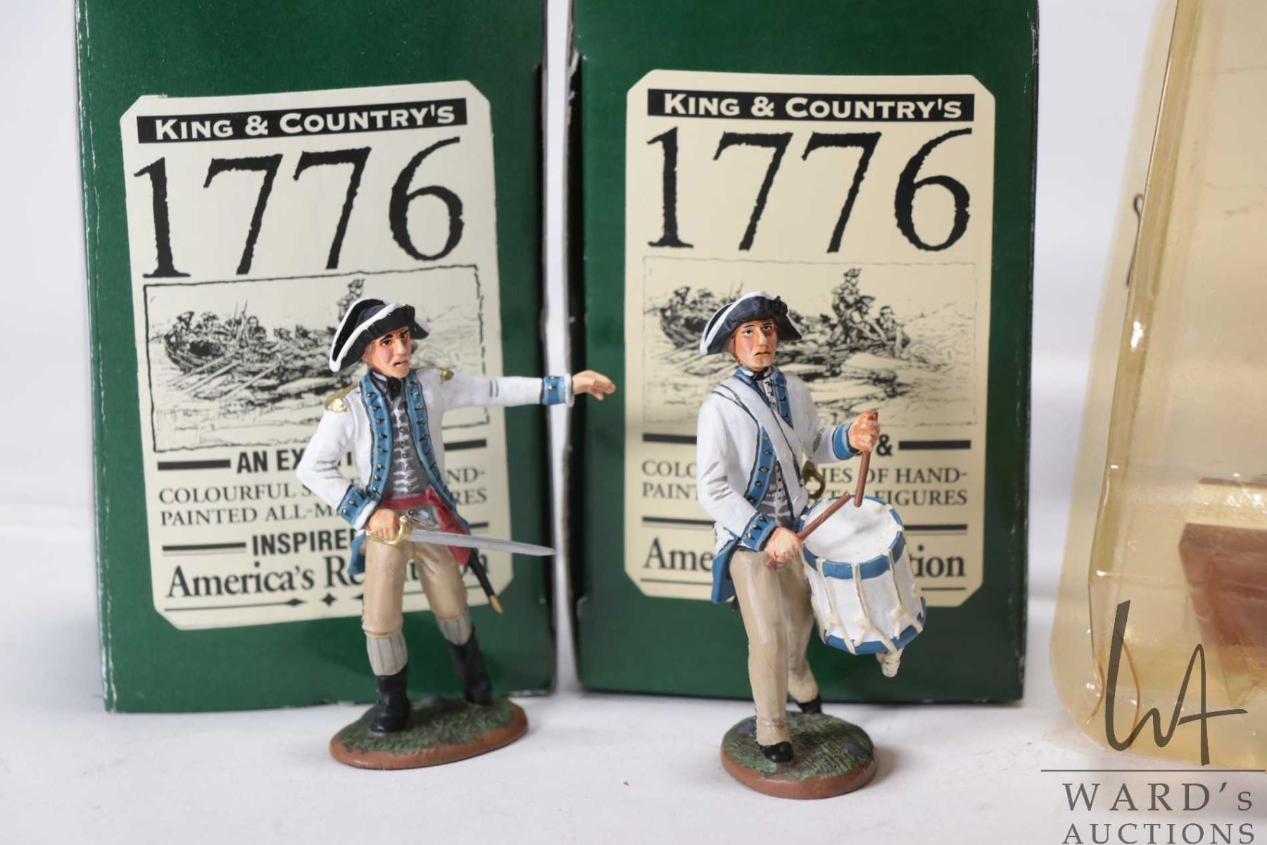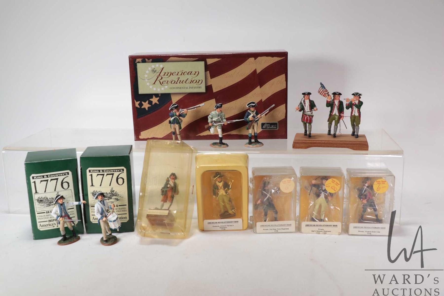 Tray lot of collectible cast metal and painted figures including The American Revolution Continental Infantry and assorted Revolution soldiers