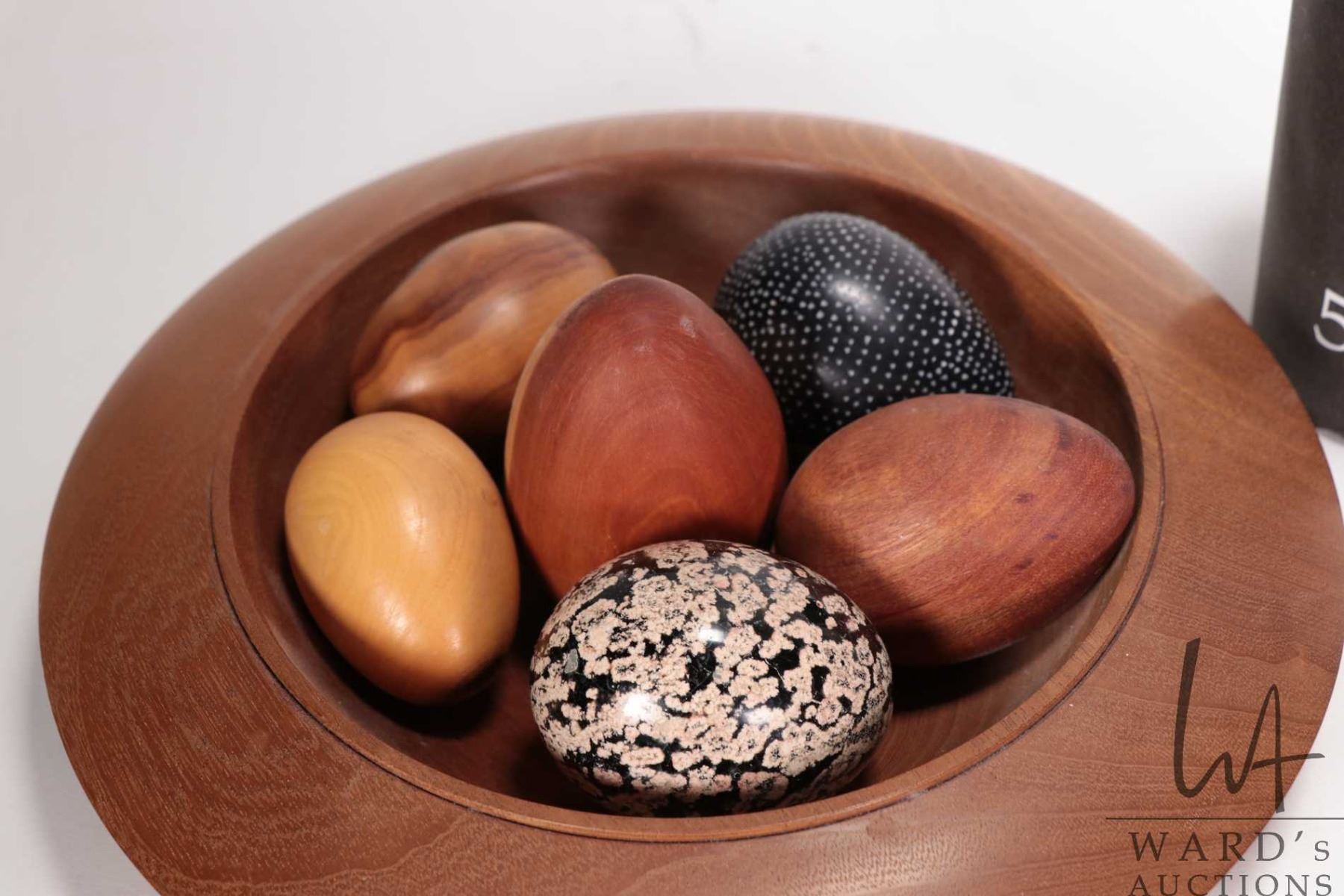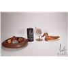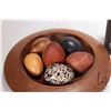 Tray lot of collectibles including turned wooden "nest" with a selection of turned wood and stone eg