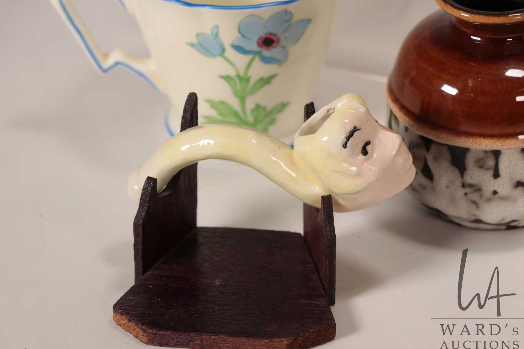 Tray lot of collectibles including two Royal Winton tennis sets, Wade copper luster pitcher, West Ge