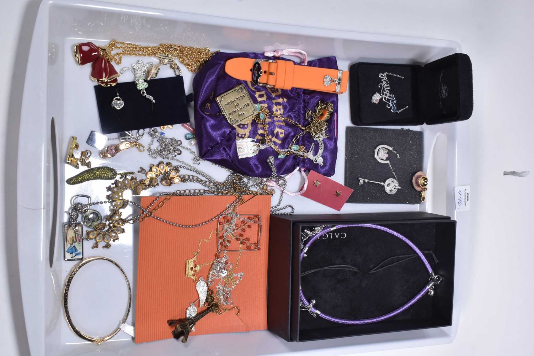 Tray lot of quality costume jewellery including Disney Couture, sterling silver jewellery, gemstone set including diamond, sapphire and tsavorite, Kimora Lee Simmons Hello Kitty, necklaces, bracelets, charms, earrings etc.
