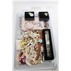 Tray lot of vintage and collectible jewellery including Elizabeth Taylors "White Diamonds" wrist watch, two Franklin mint porcelain collection necklaces, boxed diamante necklace and earring set, enameled bracelet, earrings, beaded necklaces etc.