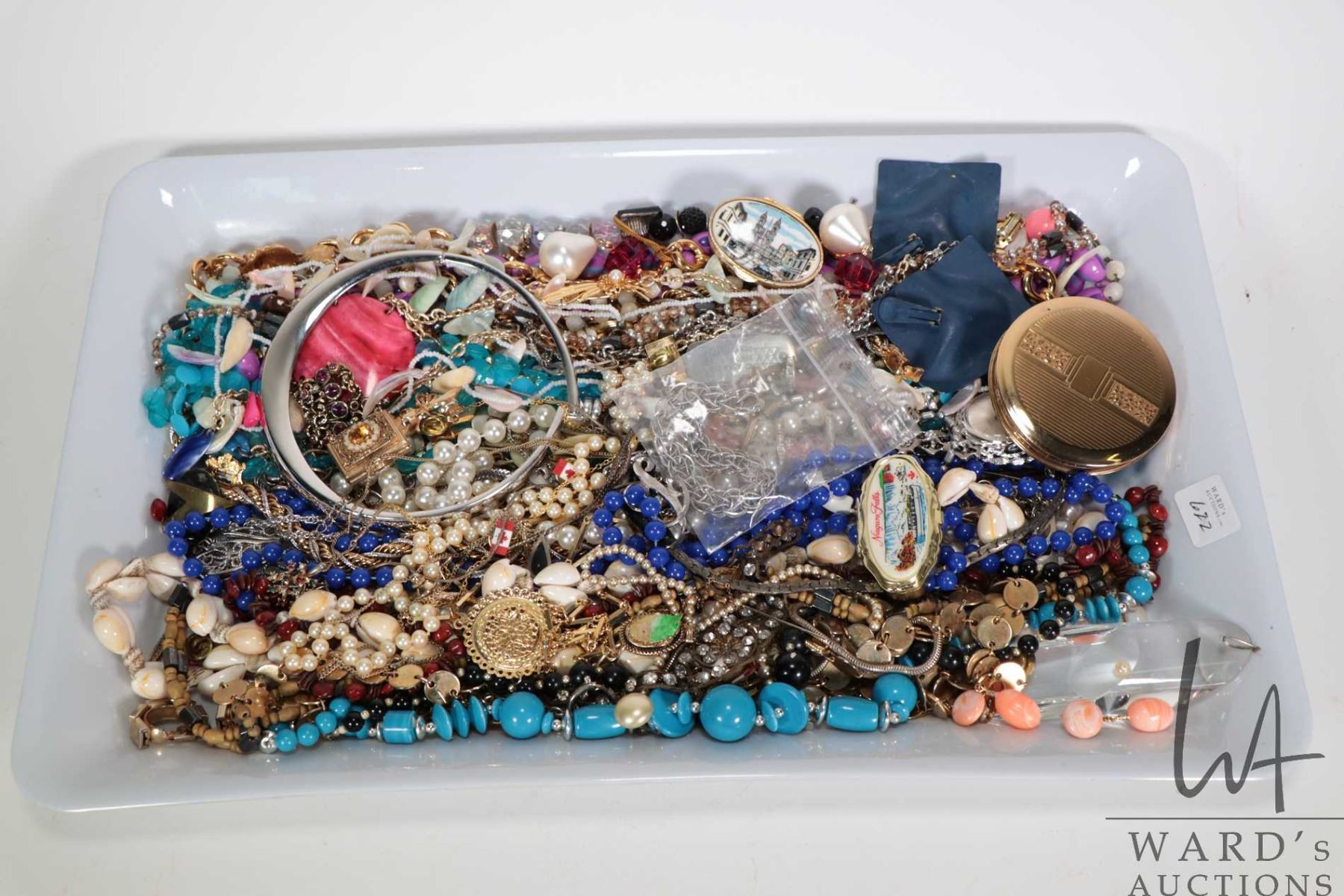 Tray lot of vintage and collectible jewellery including necklaces, brooches, bracelets, rings, earrings etc.