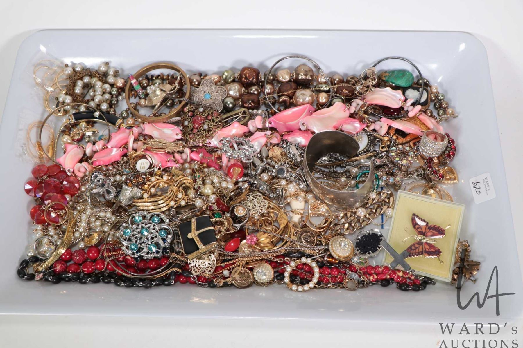 Tray lot of vintage and collectible jewellery including necklaces, brooches, bracelets rings, earrings etc.