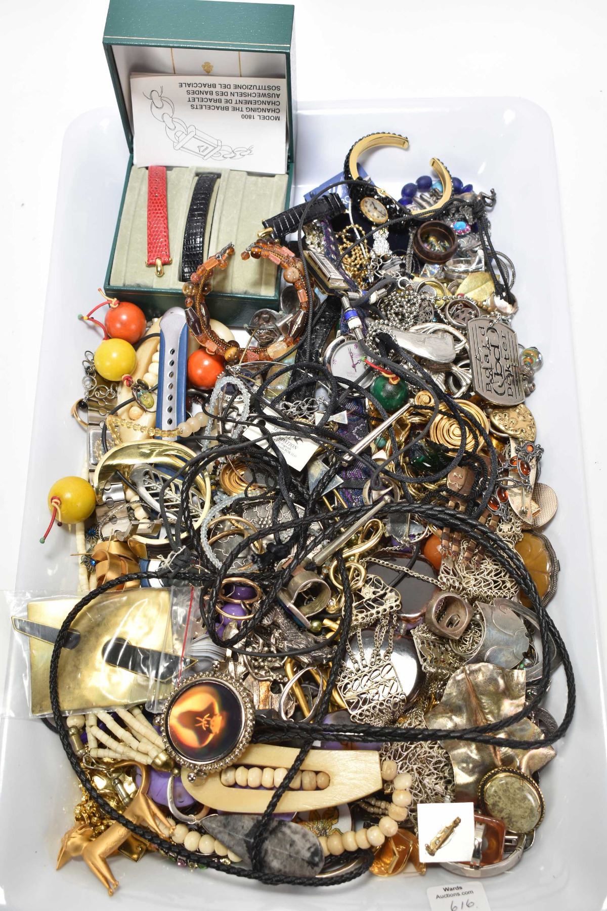 Tray lot of vintage and collectible jewellery including sterling silver, necklaces, watches, earring