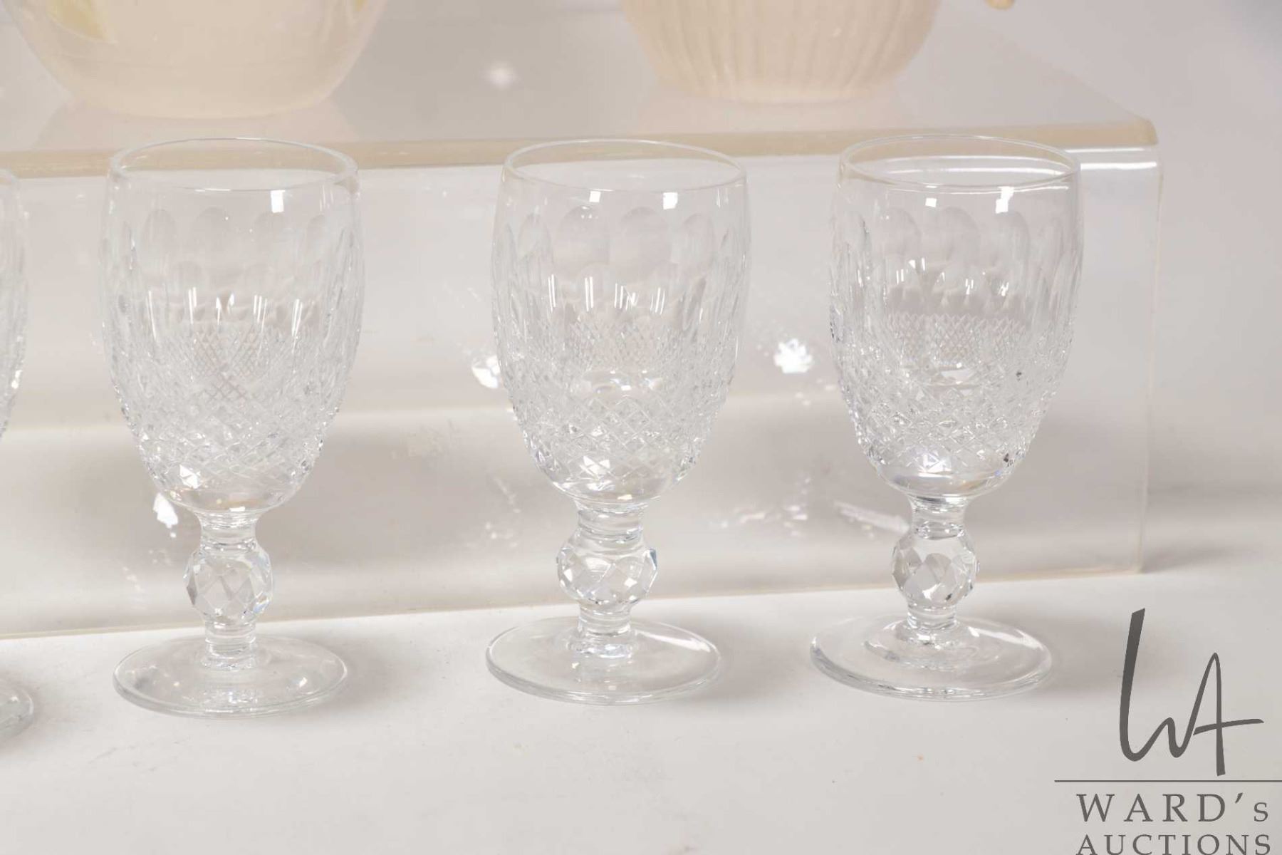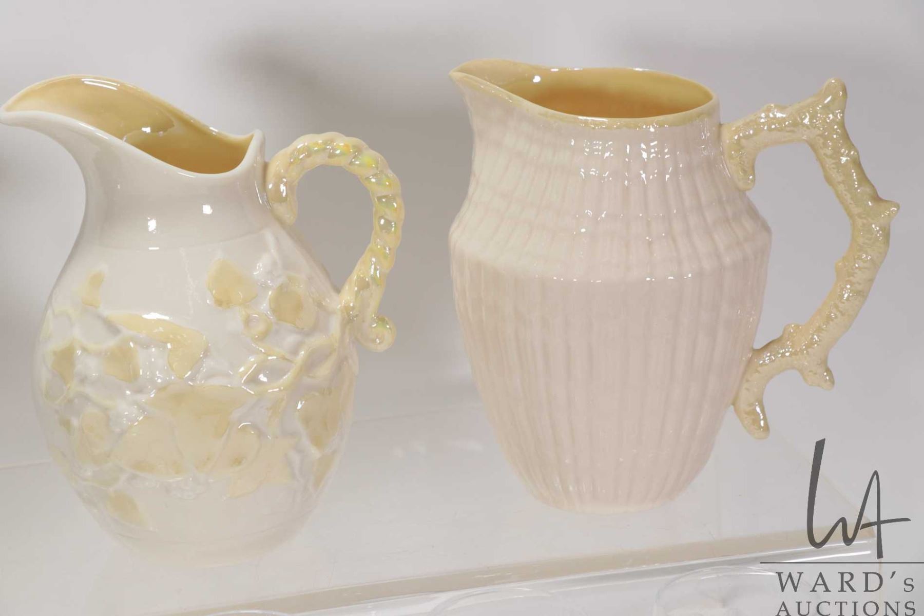 Tray lot of vintage collectible including two Belleek pitchers, six matching Waterford crystal sherr