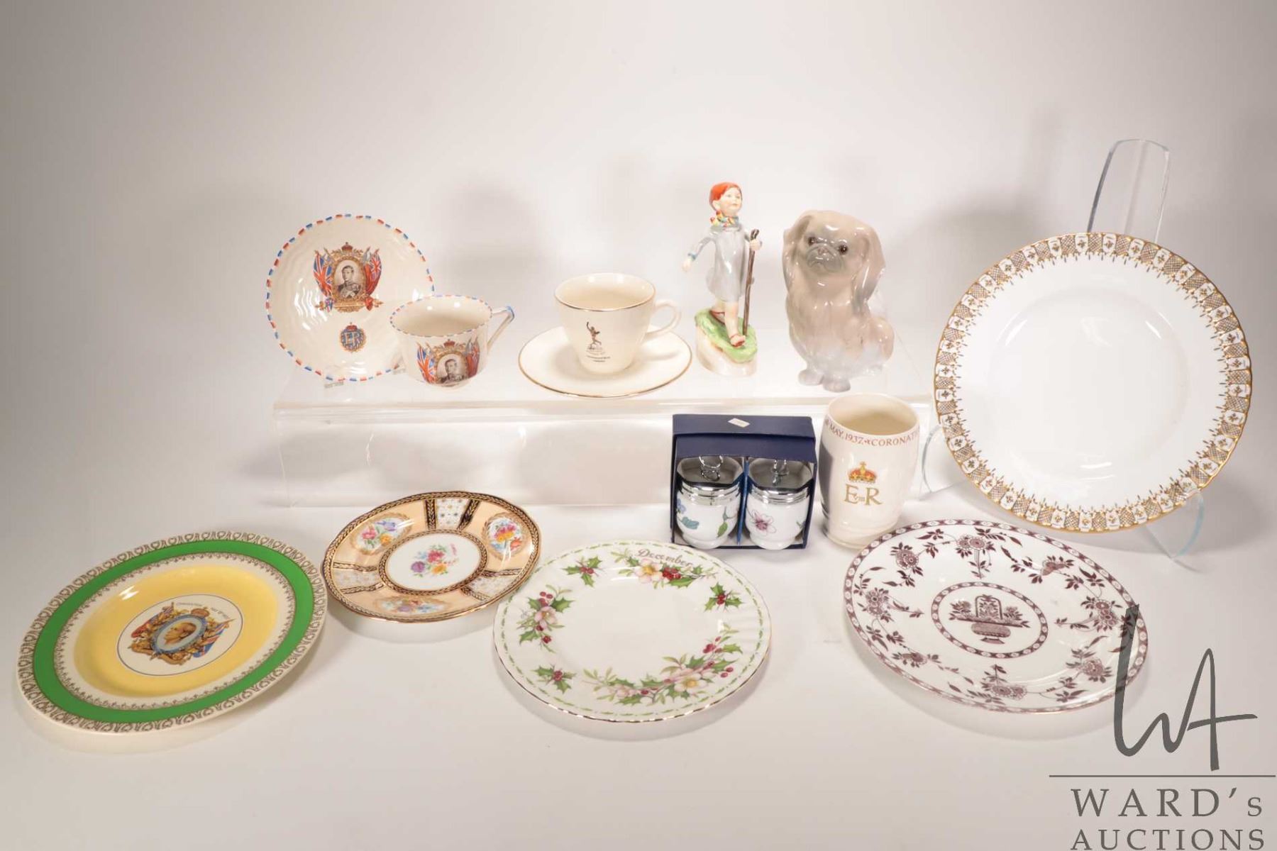 Tray lot of vintage collectibles, King Edward VIII royalty ware, Royal Doulton "Thursday's Child Has