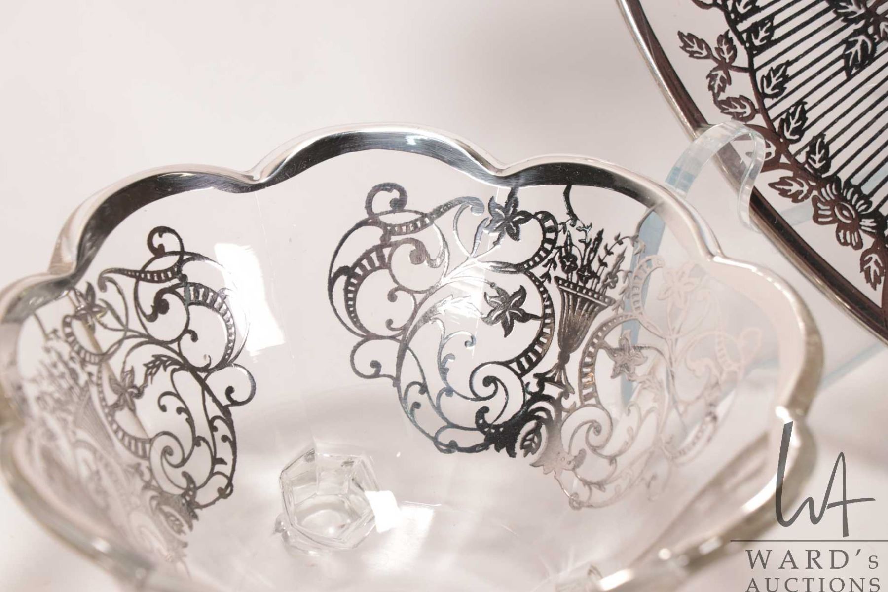 Tray lot of vintage silver overlay including 10" diameter center bowl