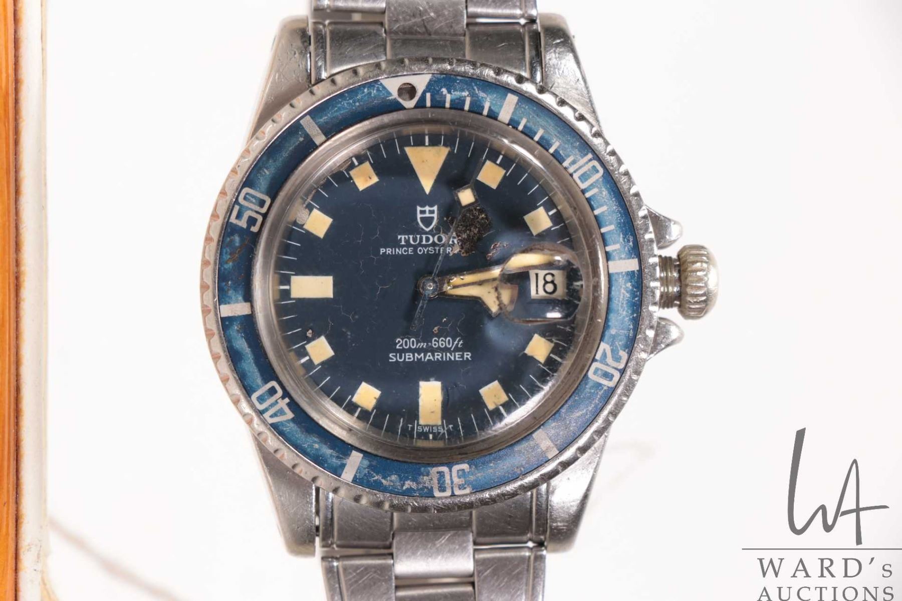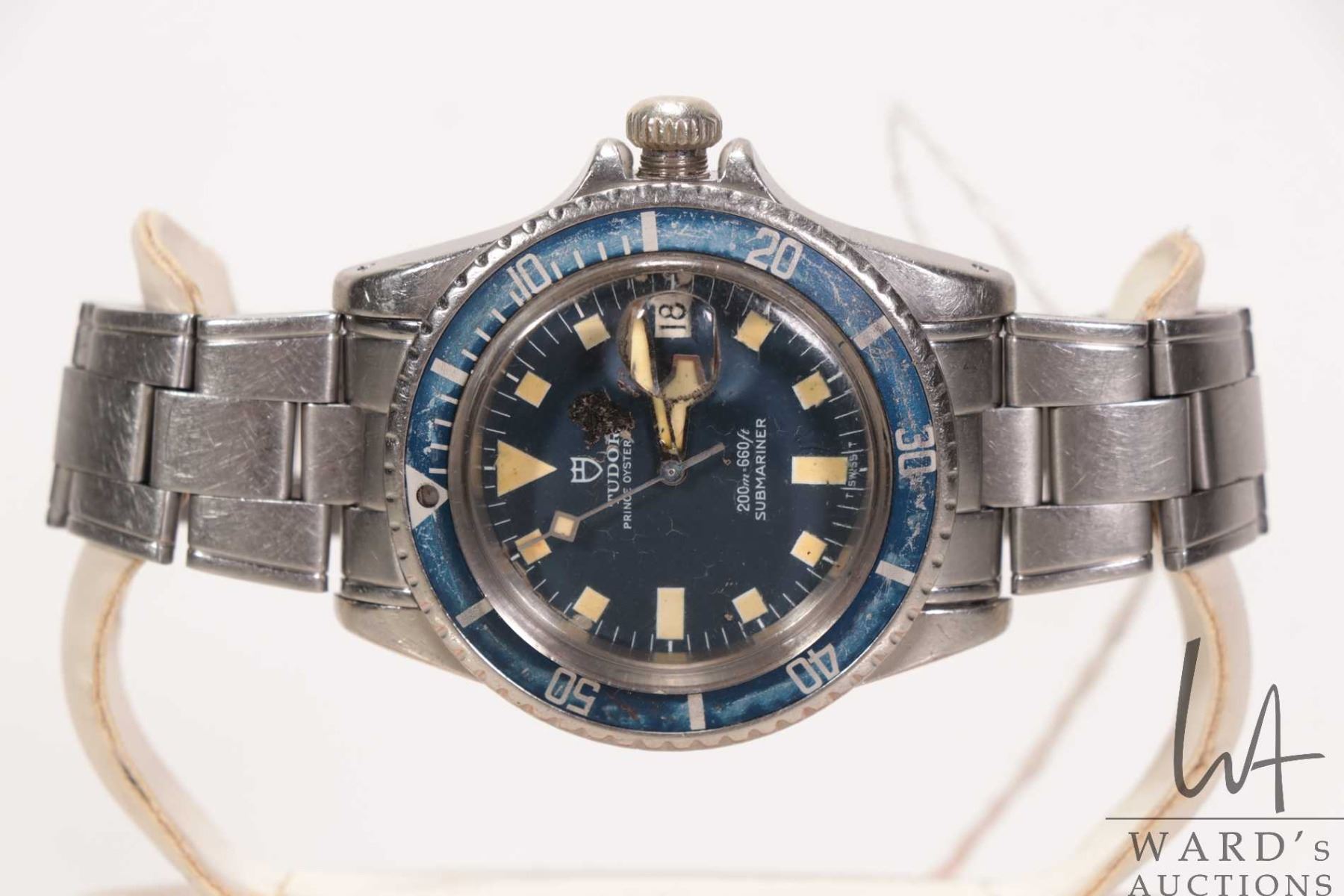 Tudor Prince Oyster Submariner model 94110 date model wrist watch, serial no. 924244. Water resistant to 220m= 60 ft., Rolex signed case back, with "snowflake" type A dial. Replaced stainless bracelet. Working at time of cataloguing.