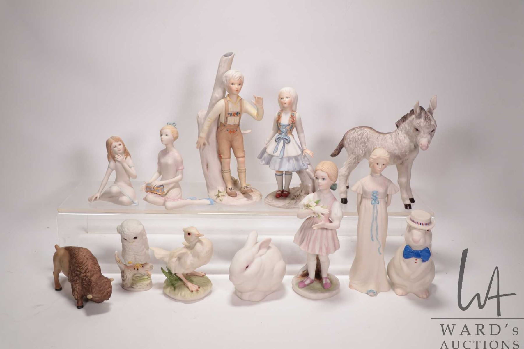 Twelve Cybis porcelain collectibles including figurines, rabbits and donkey etc. NOTE: SHIPPING IS