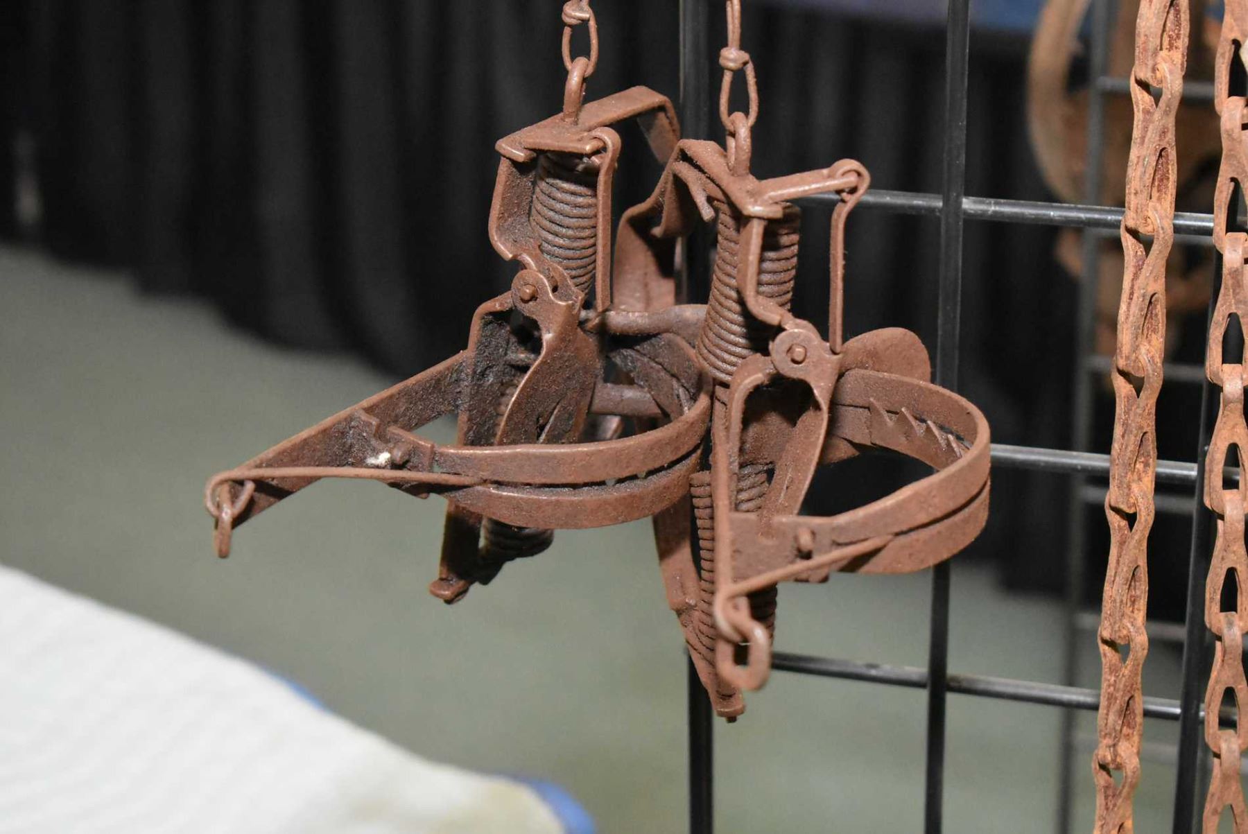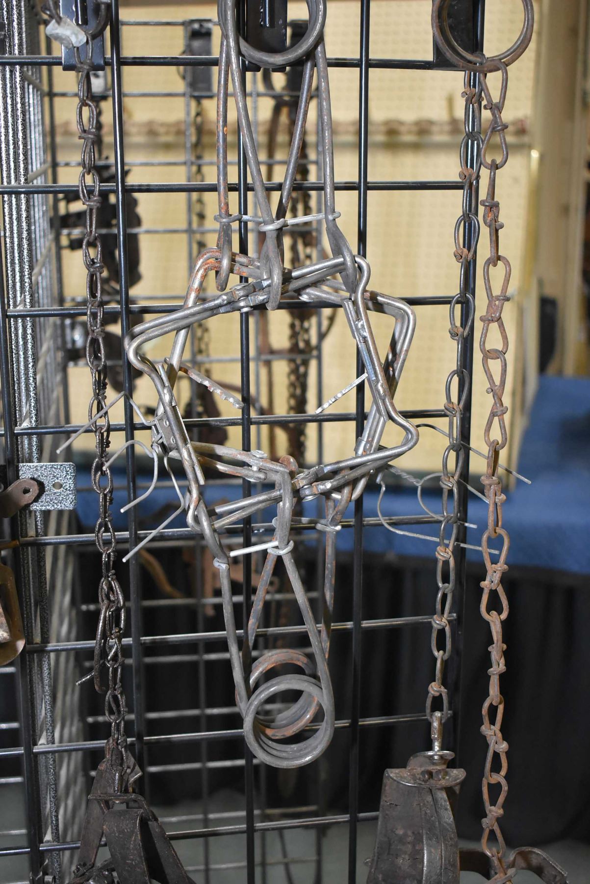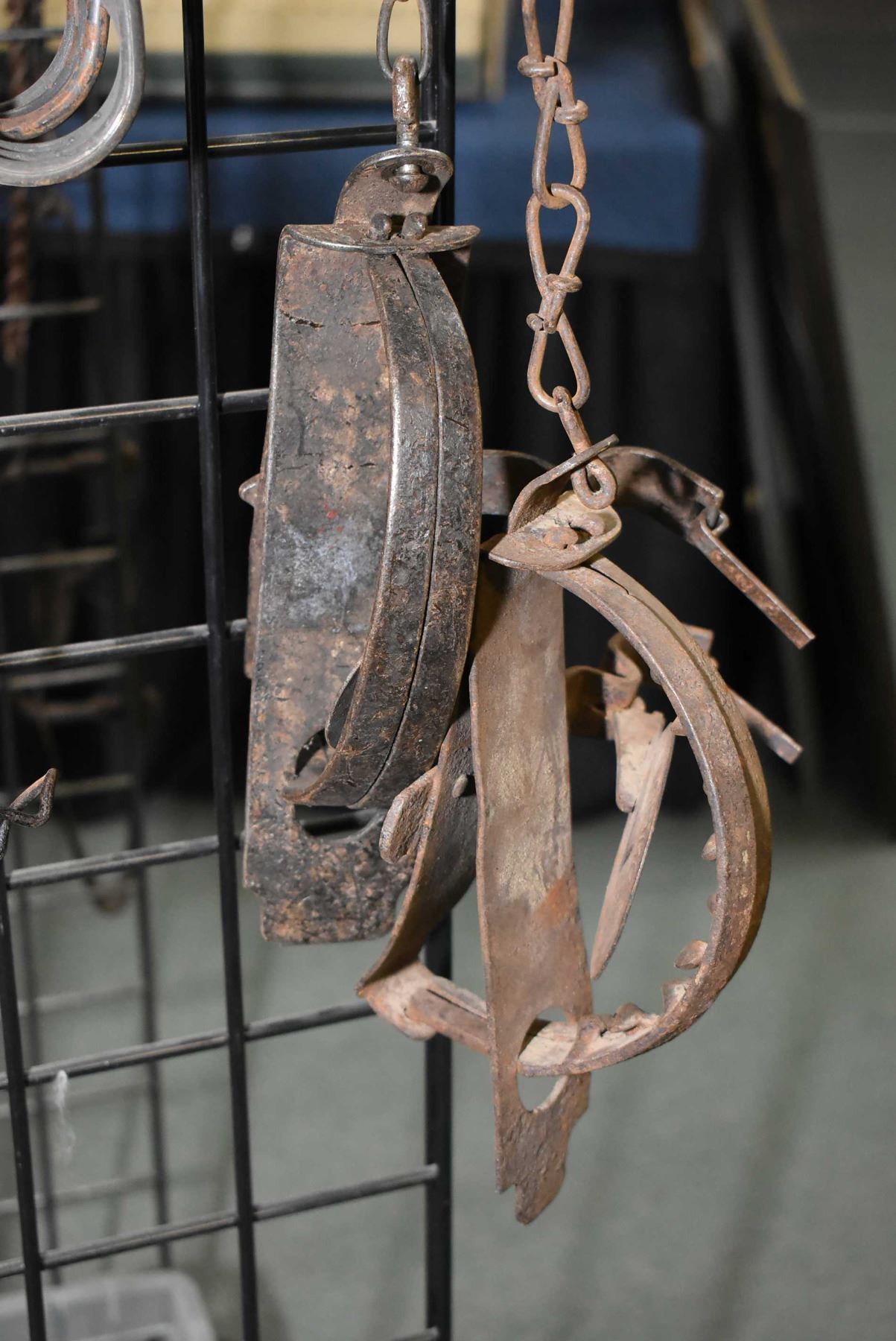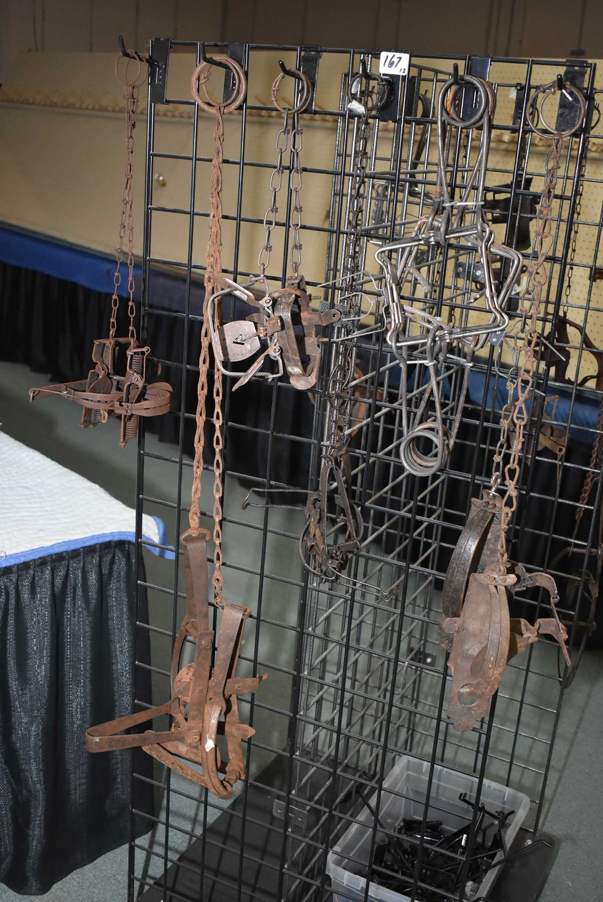 Twelve assorted metal leg hold spring traps