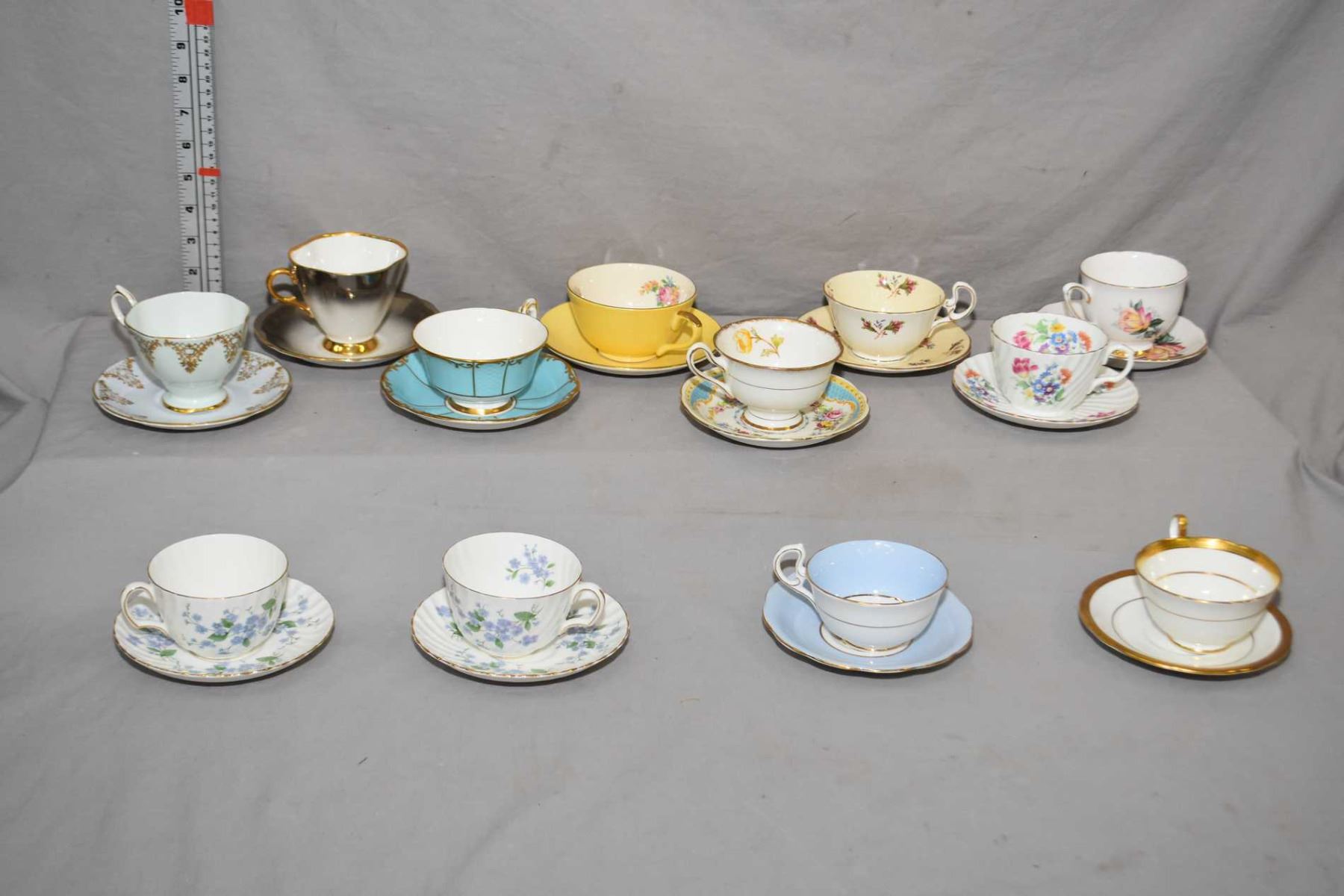 Twelve china tea cups and saucers including Royal Albert, Aynsley, Royal Adderley, Royal Leighton, W