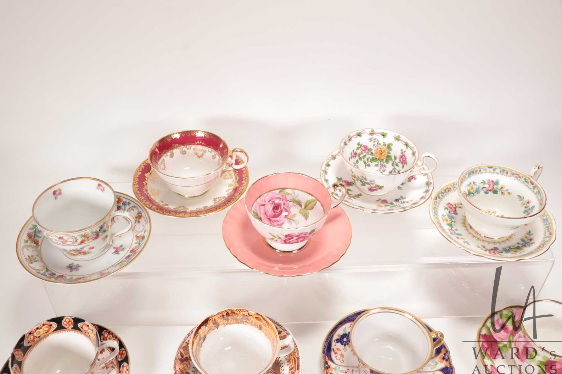 Twelve collectible china cups and saucers including Aynsley, Foley, Grafton, Royal Albert etc.