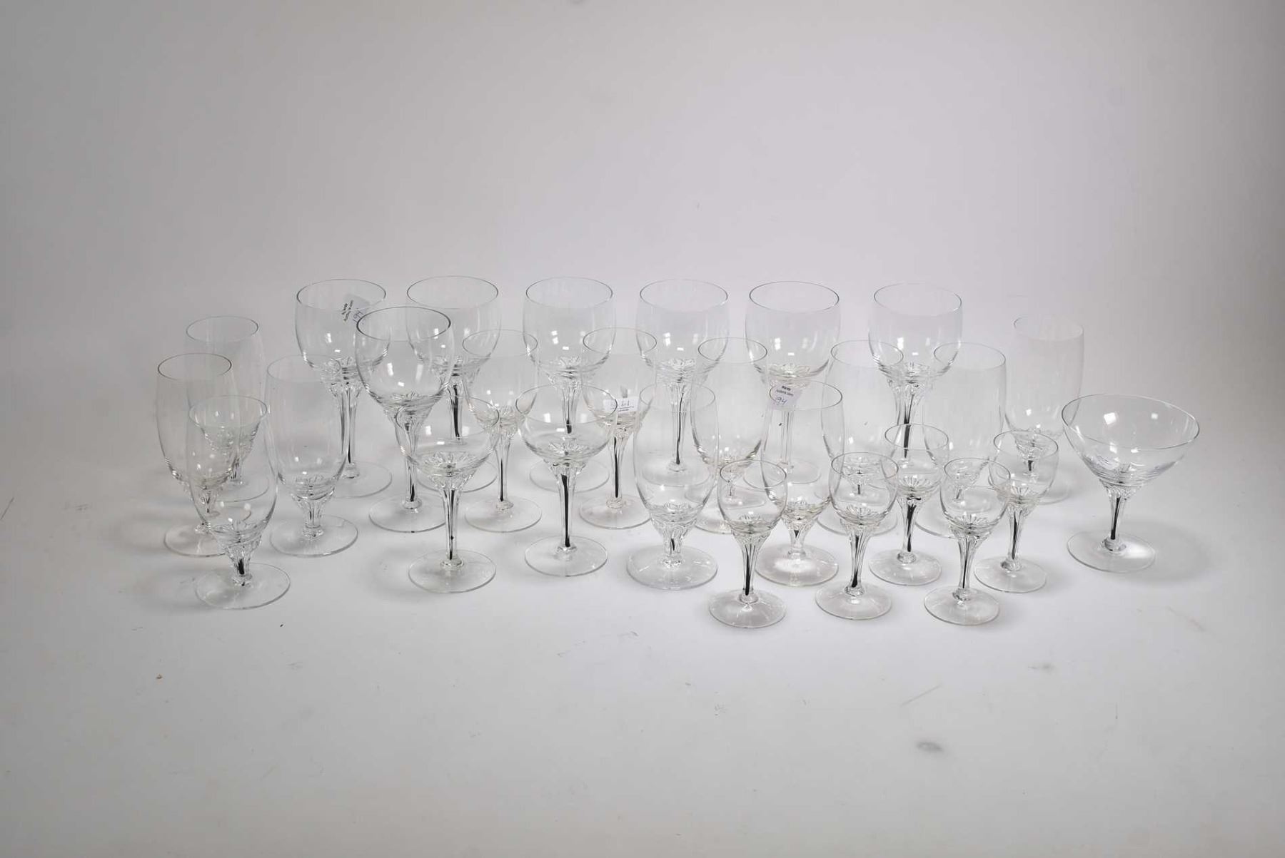 Twenty seven piece set of quality crystal stemware with black and colourless cased stems including wine, aperitif, juice etc. no identified maker. Appears to be Czechoslovakian made Belfor exquisite crystal. Not available for shipping. Local pickup only