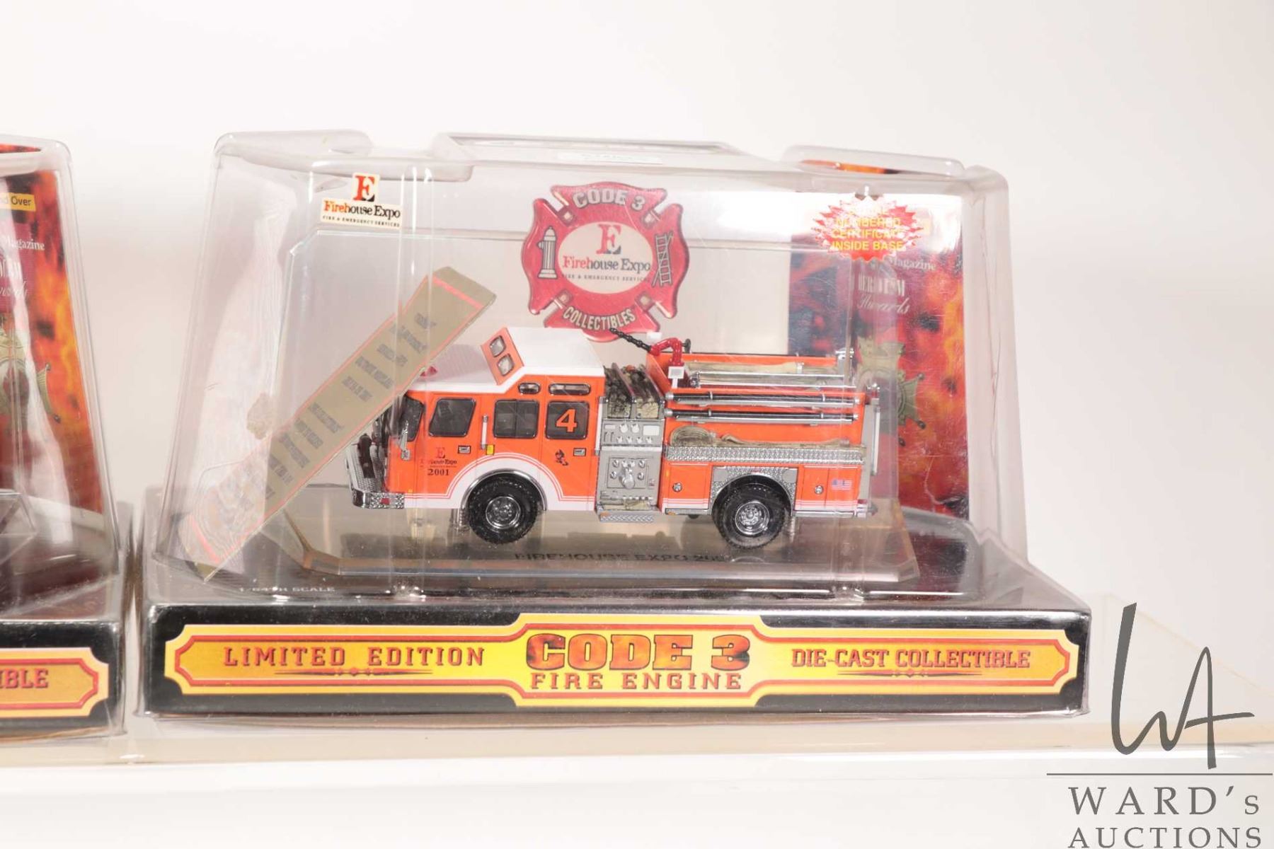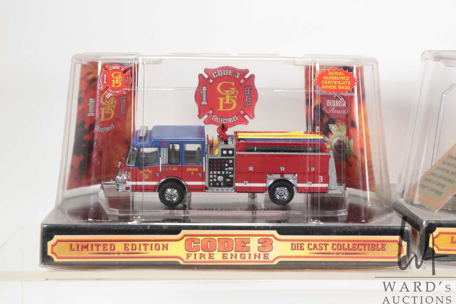 Two 1:64 scale Limited Edition Code 3 Fire Engines including Gary Ind. Fire Dept. and Baltimore Maryland Fire Department