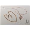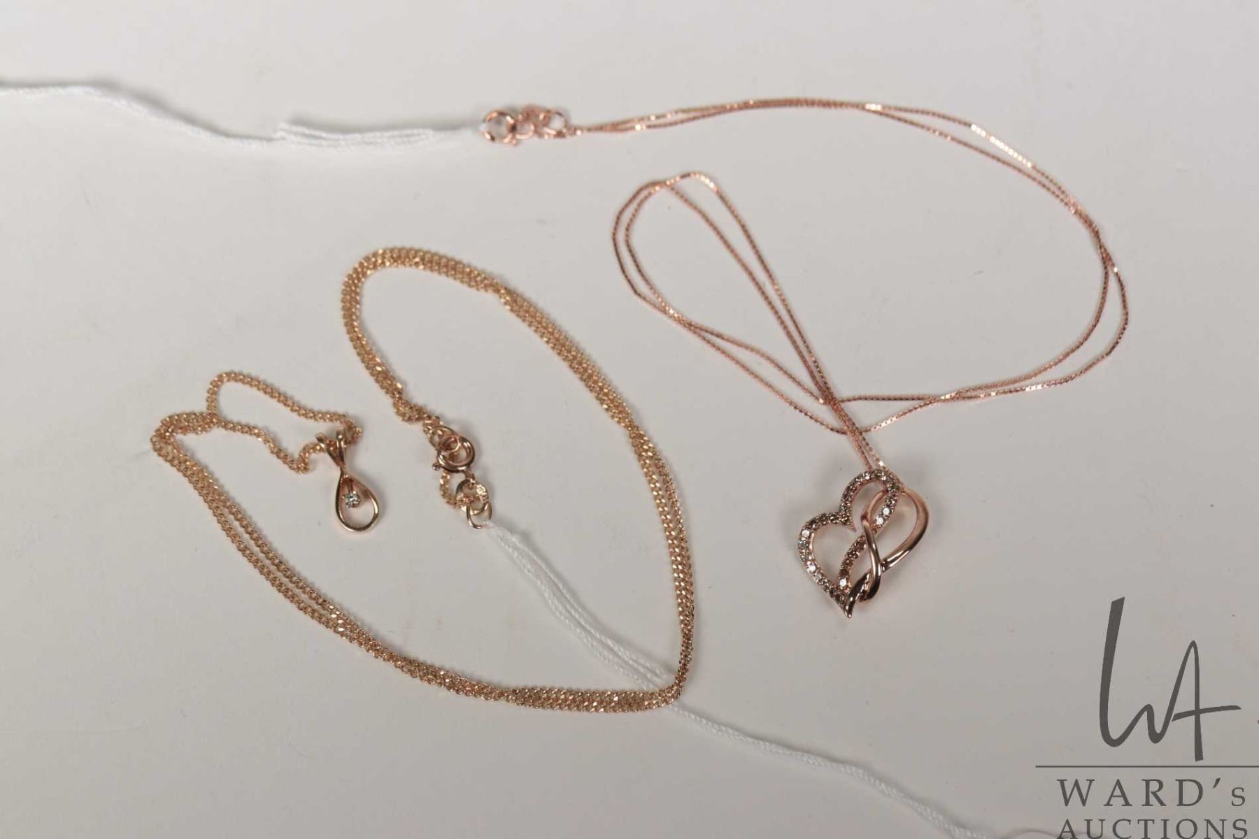 Two 10kt rose gold necklaces including 18" delicate curb chain with single accent diamond pendant and a fine box chain with stylized heart shaped pendant set with small accent diamonds