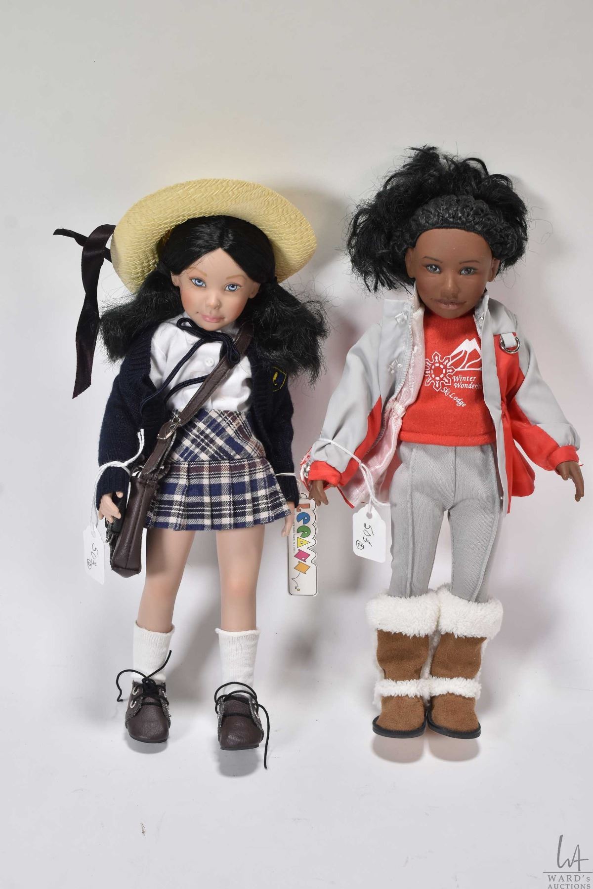 Two 11" Denis Bastien dolls including School Days Leeann and Leneda in Winter Wonderland outfit