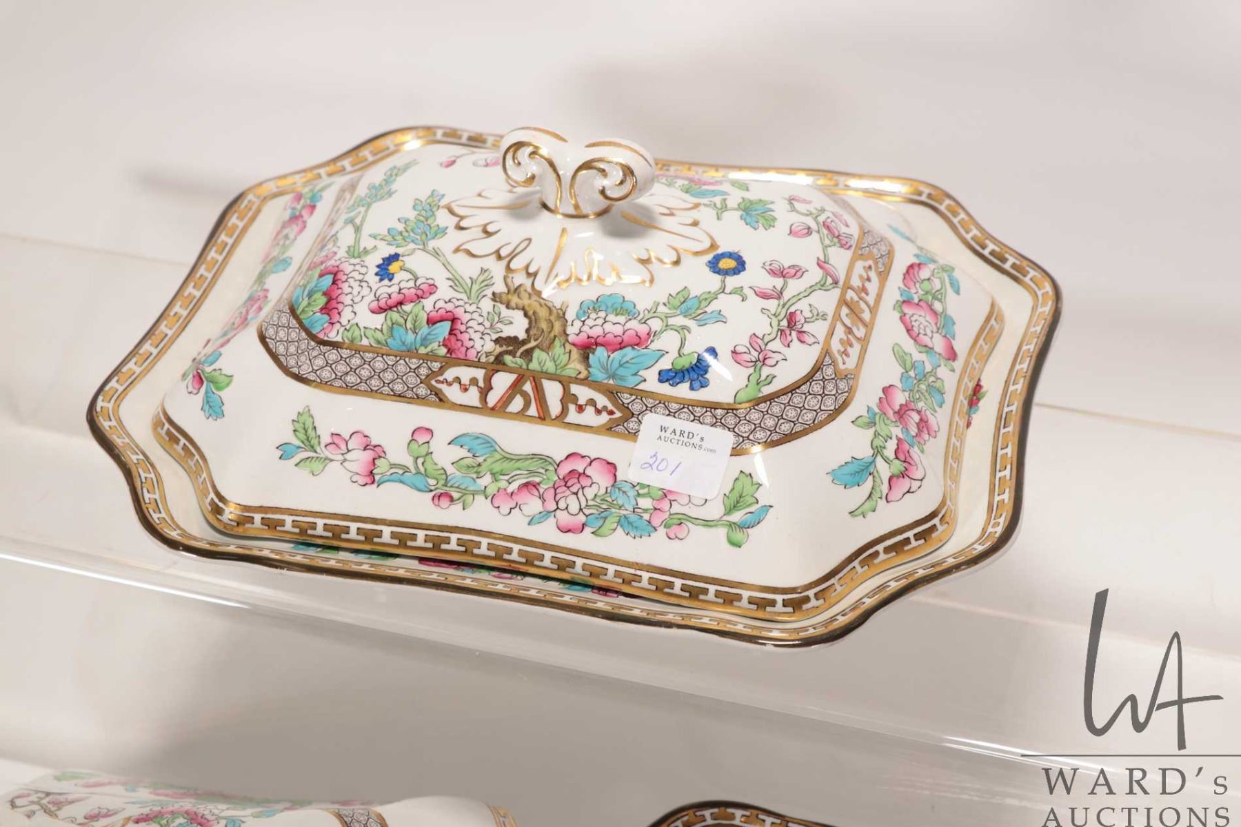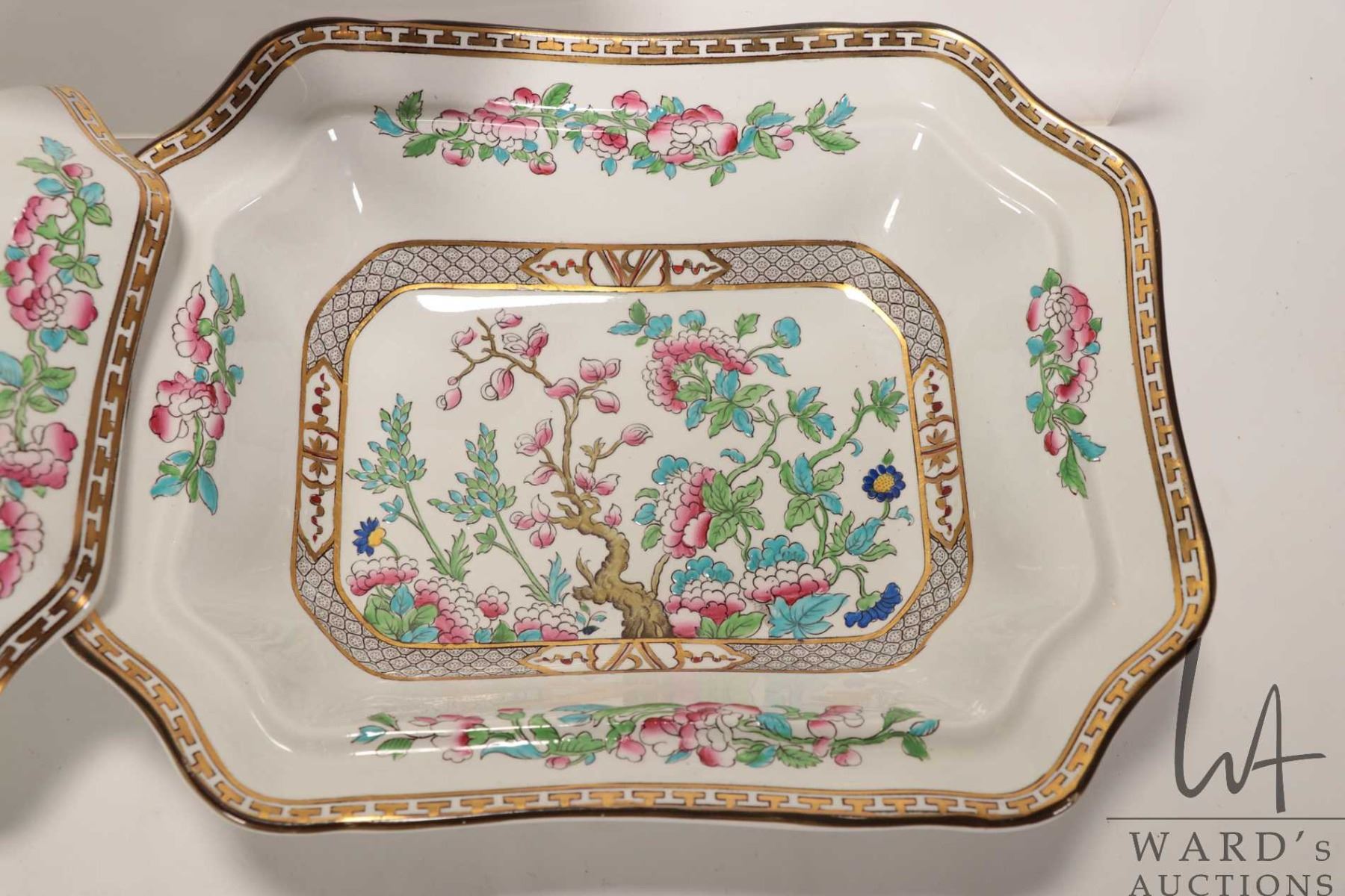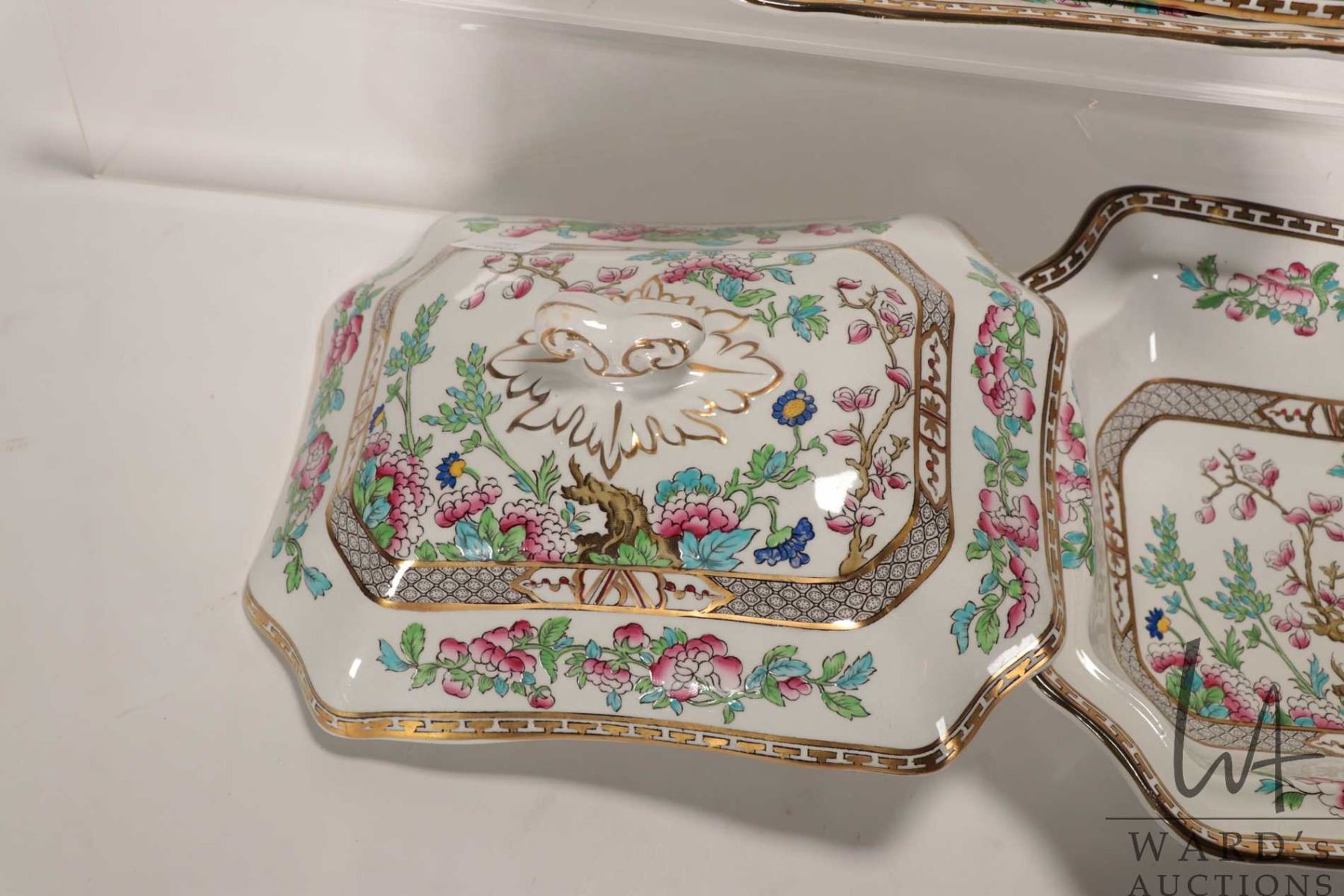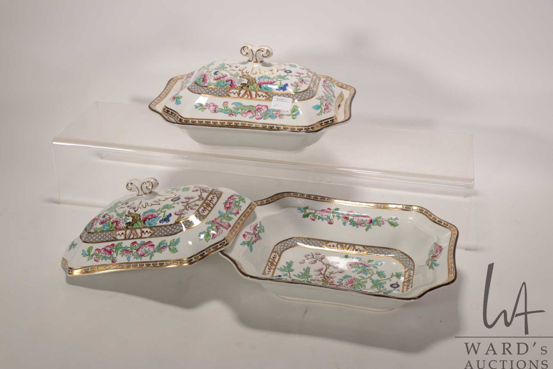 Two Bridgewood Indian Tree lidded casseroles including one marked "Harrods Ltd, London"