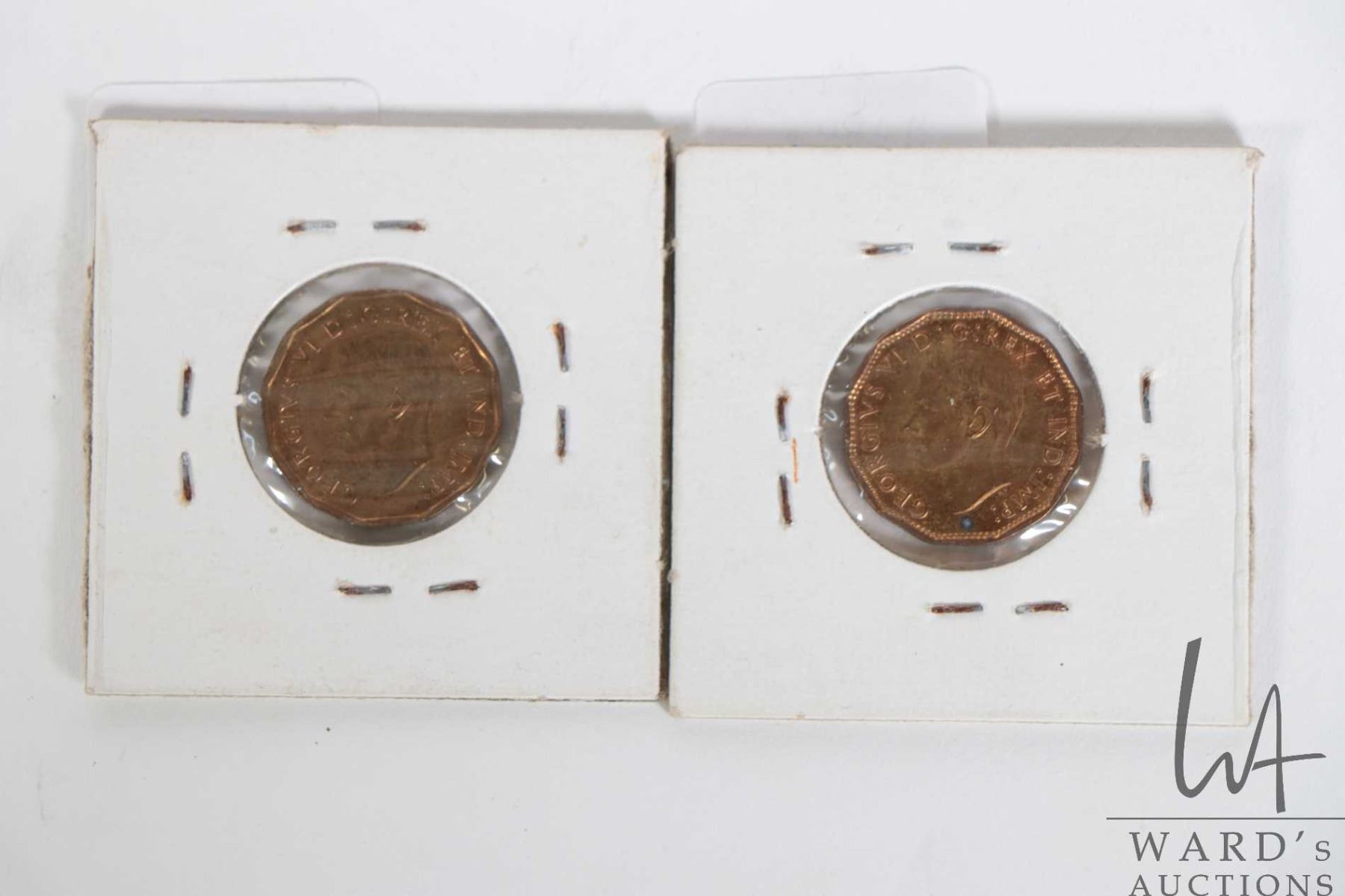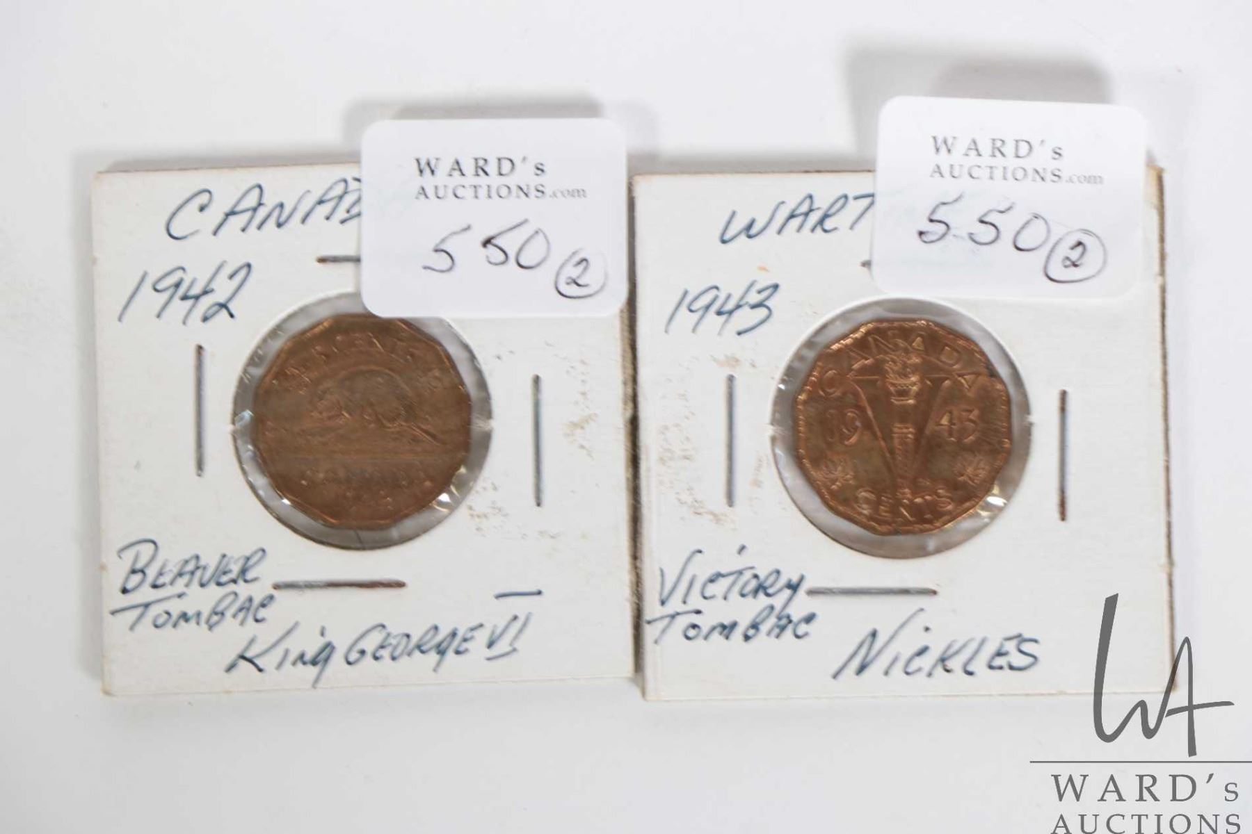 Two Canadian nickels including 1942 Beaver Tombac King George VI and 1943 Victory Tombac