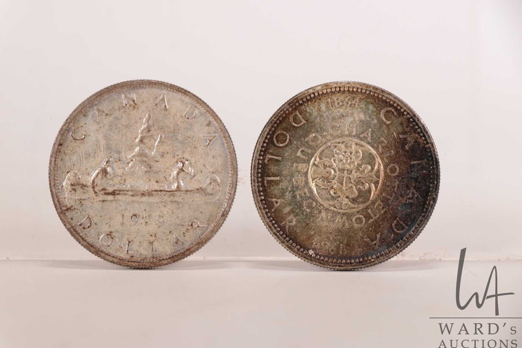 Two Canadian silver dollars including 1959 and 1964