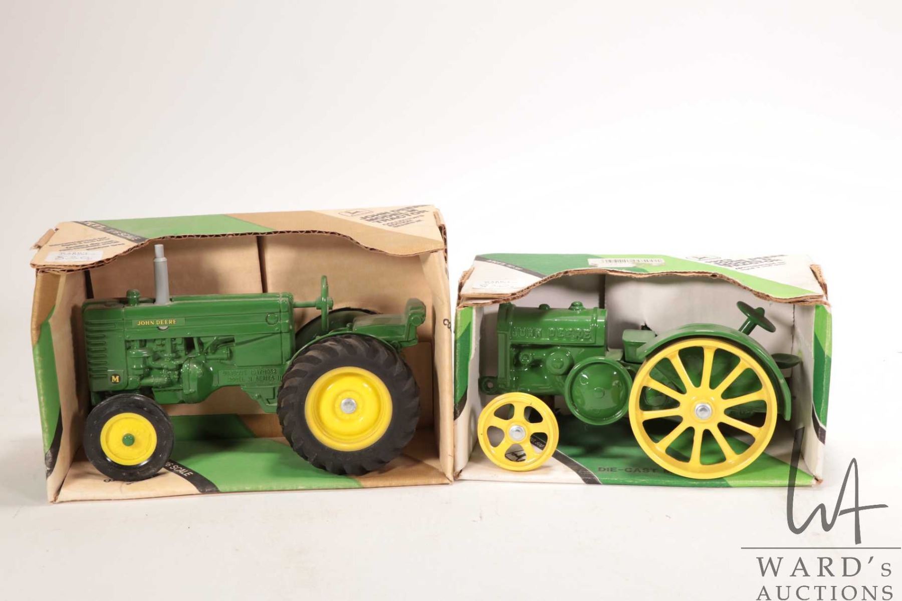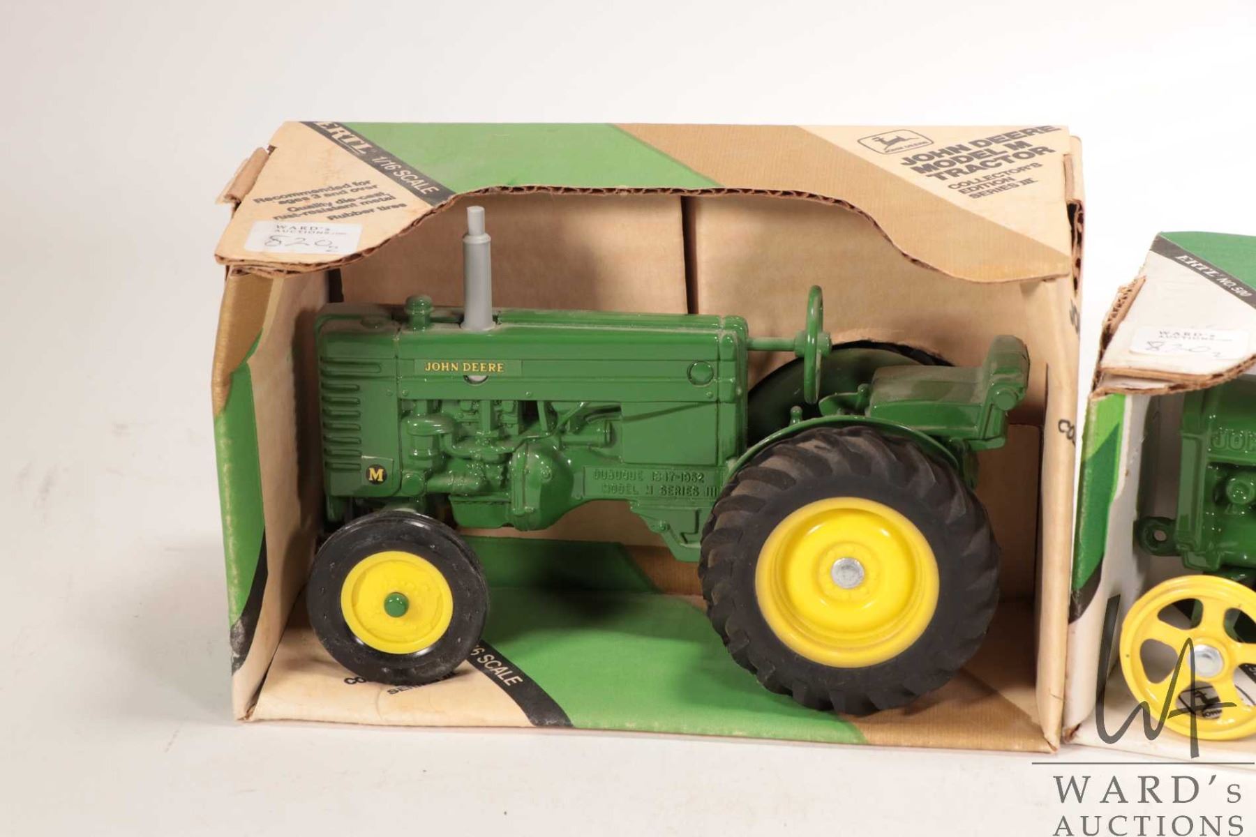 Two Ertl 1:16 scale die-cast John Deere Tractors including Model D and Model M, both in original boxes