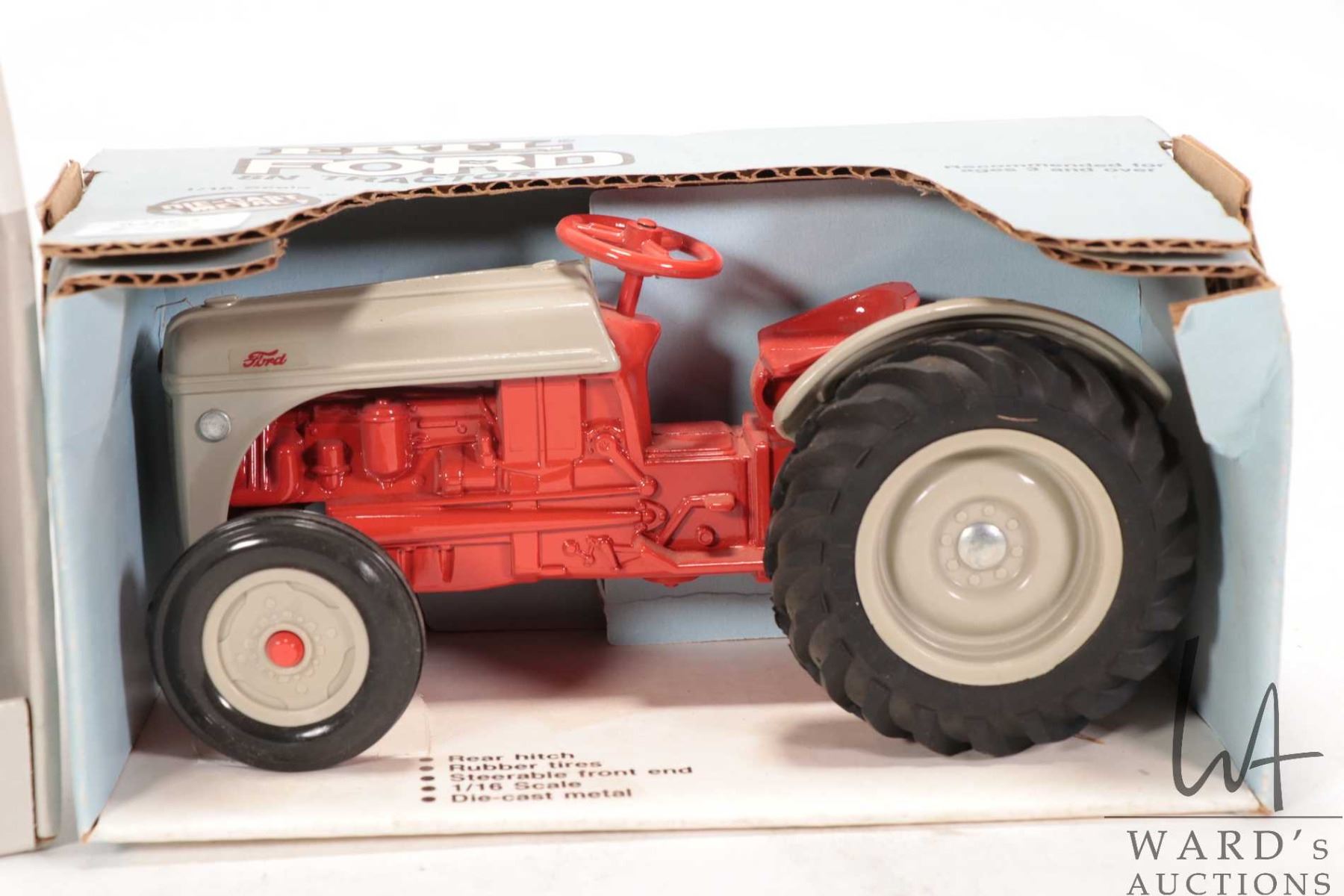 Two Ertl 1:16 scale die-cast toys including Ford 8N Tractor and Farmall Super Tractor, both in origi