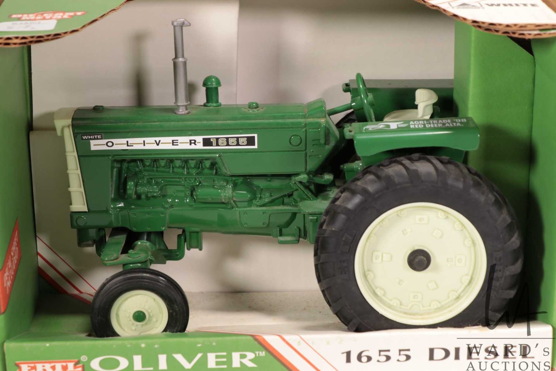Two Ertl 1:16 scale die-cast toys including White Oliver 1655 Diesel and a Minneapolis Moline G 750,