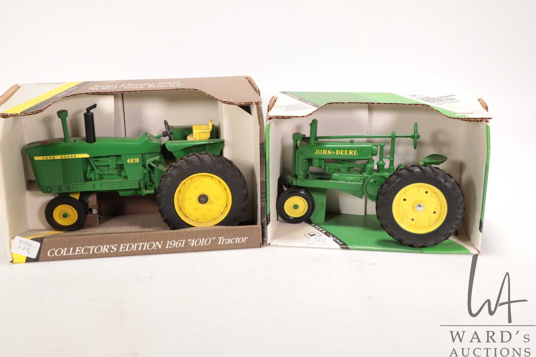 Two Ertl John Deere die-cast 1:16 scale Tractors including Model A and a 4010 Gas, both with original box
