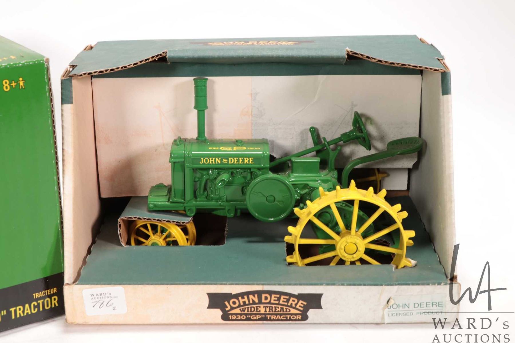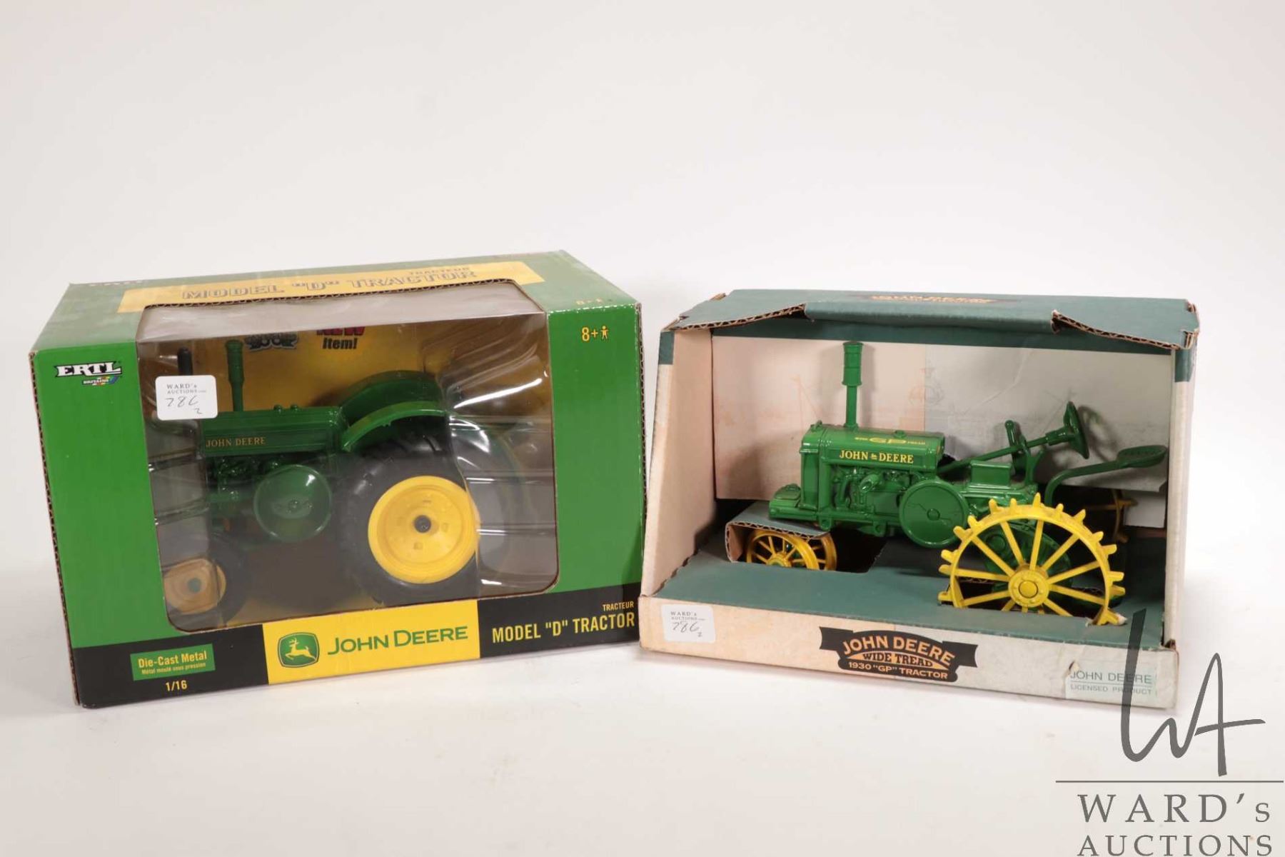 Two Ertl John Deere die-cast 1:16 scale toys including 1930's GP Tractor, and a Model D Tractor, both with original box