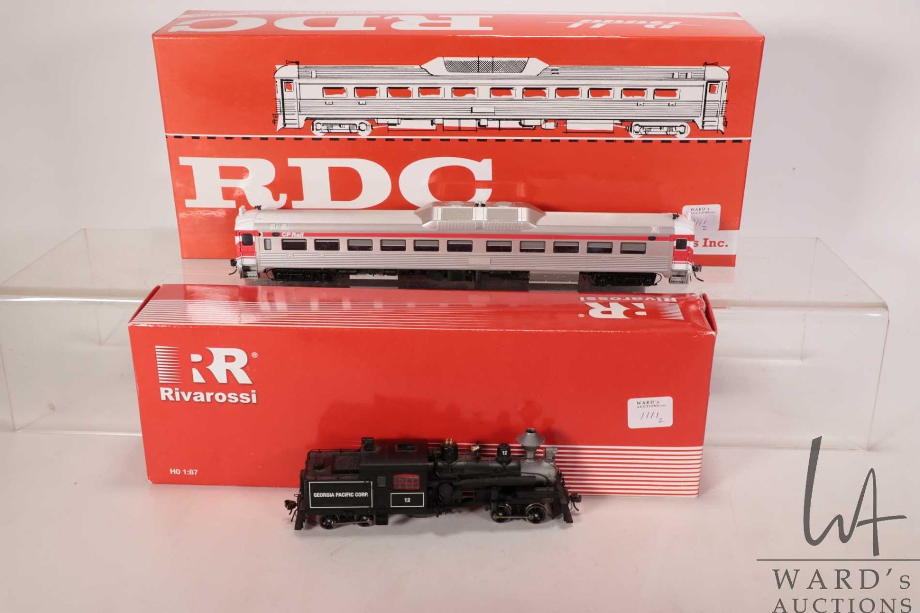 Two HO scale diesel locomotives including Rivarossi HR2412 DC/ DCC sound Heisler steam locomotive and Rapido Train Inc. BUDD RDC-DCC SOUND Action Red Unnumbered, both with original box and working at time of cataloguing