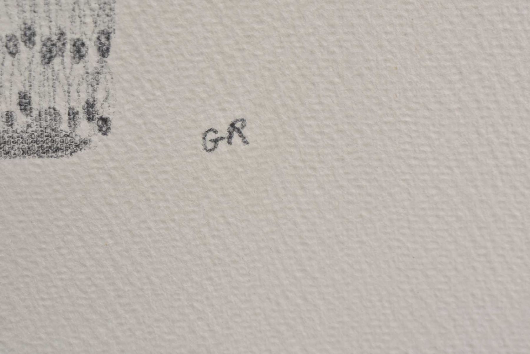 Two Haida themed original pencil drawings including figure in ceremonial dress 20" X 12" and totems around a camp 12" X 20", each initialled G.R.