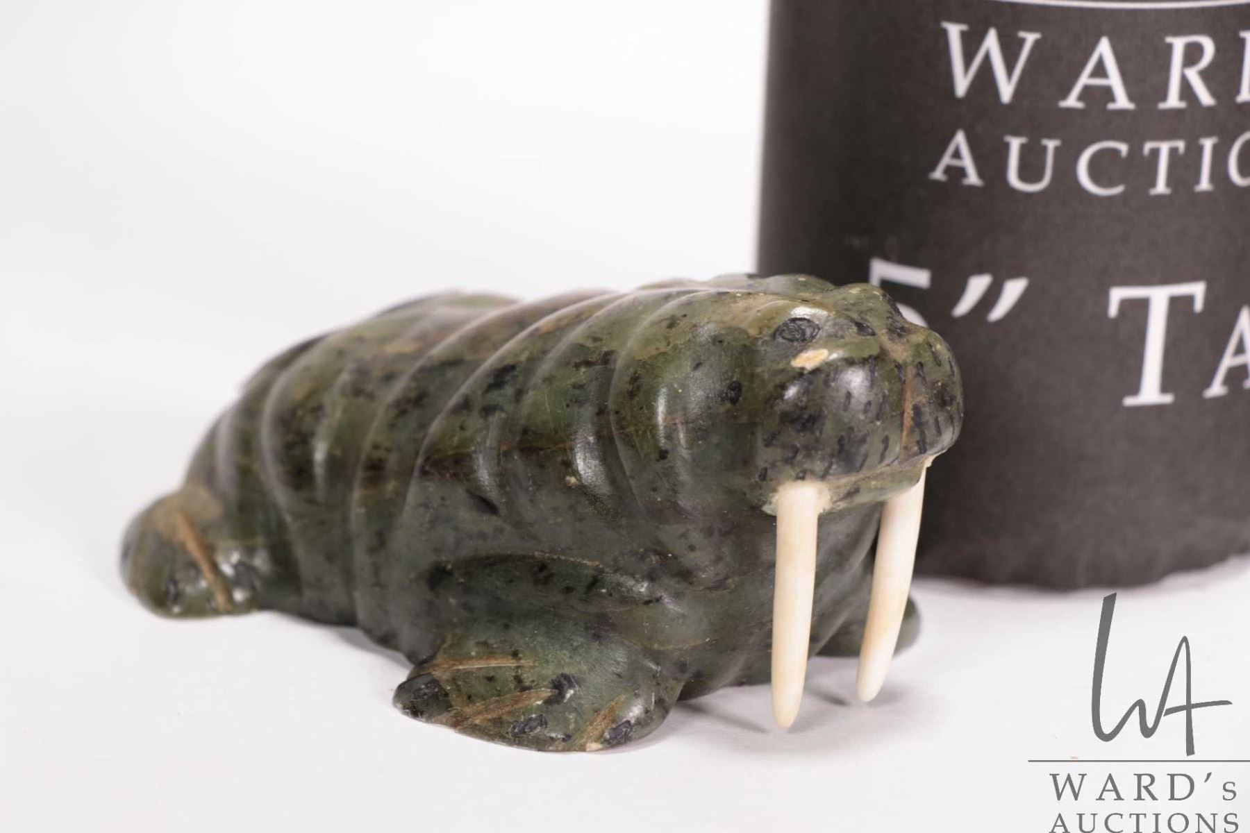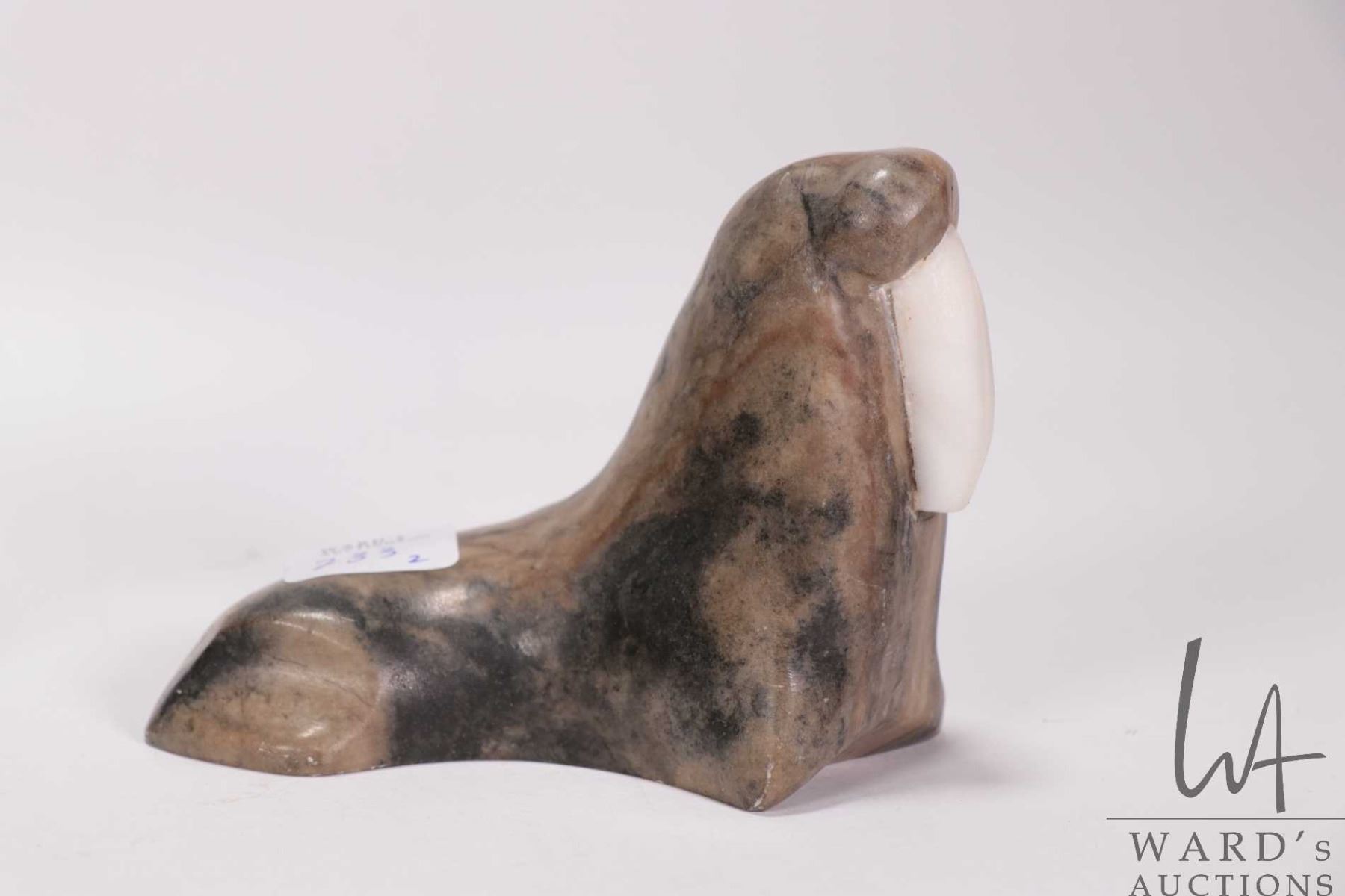 Two Inuit soapstones including 4 1/2  walrus signed by artist Sepak, Alaska 1990 and a walrus signed