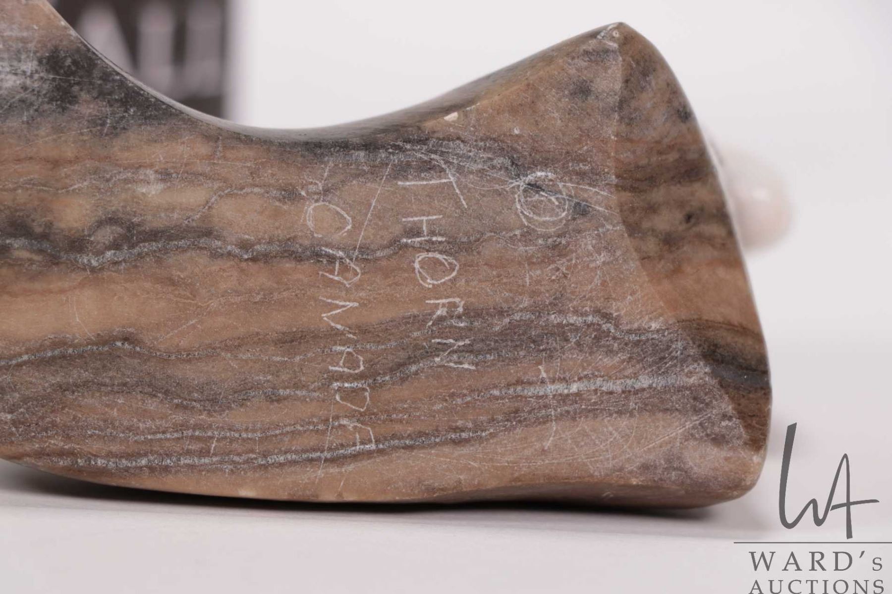 Two Inuit soapstones including 4 1/2" walrus signed by artist Sepak, Alaska 1990 and a walrus signed Thorn Canada