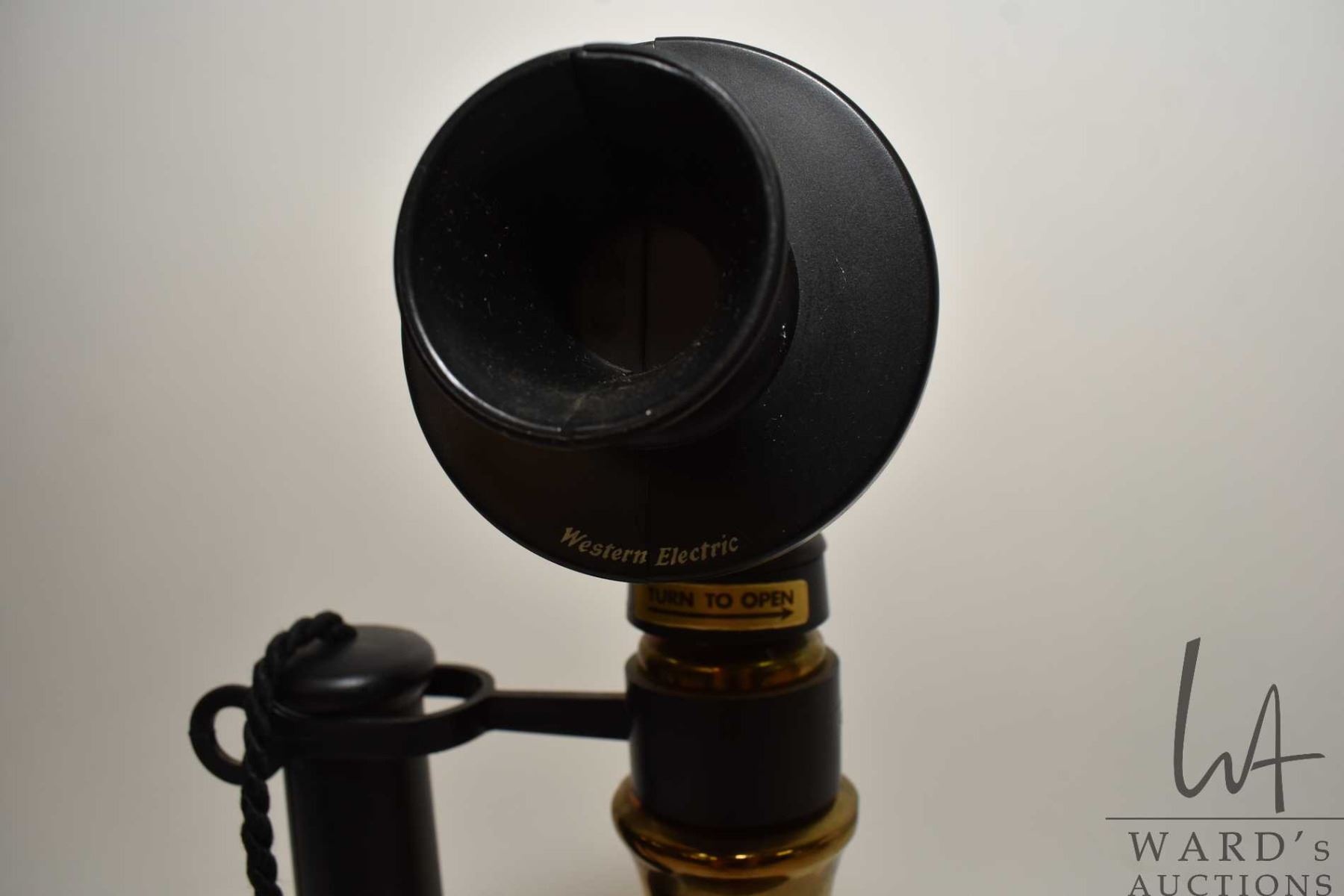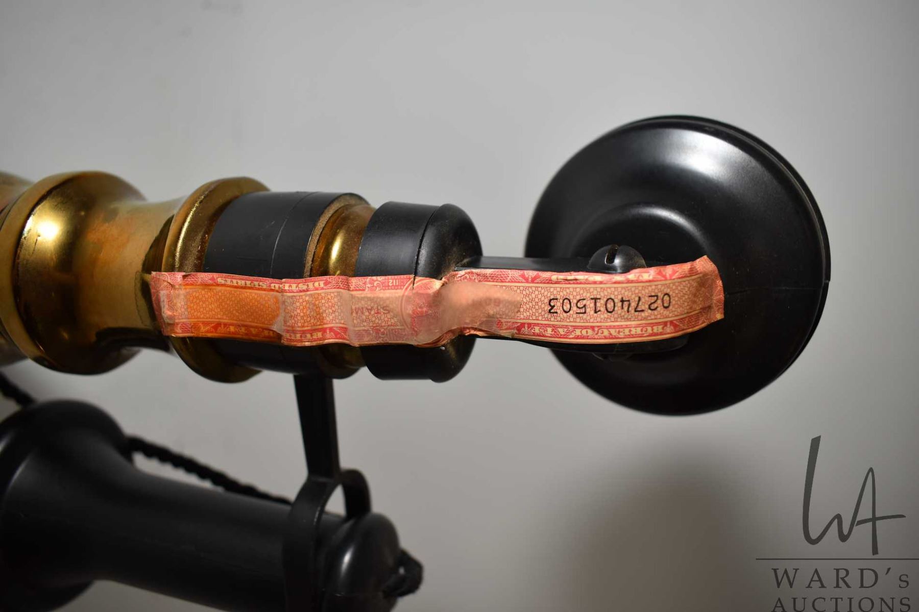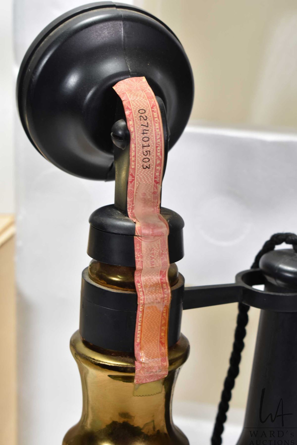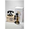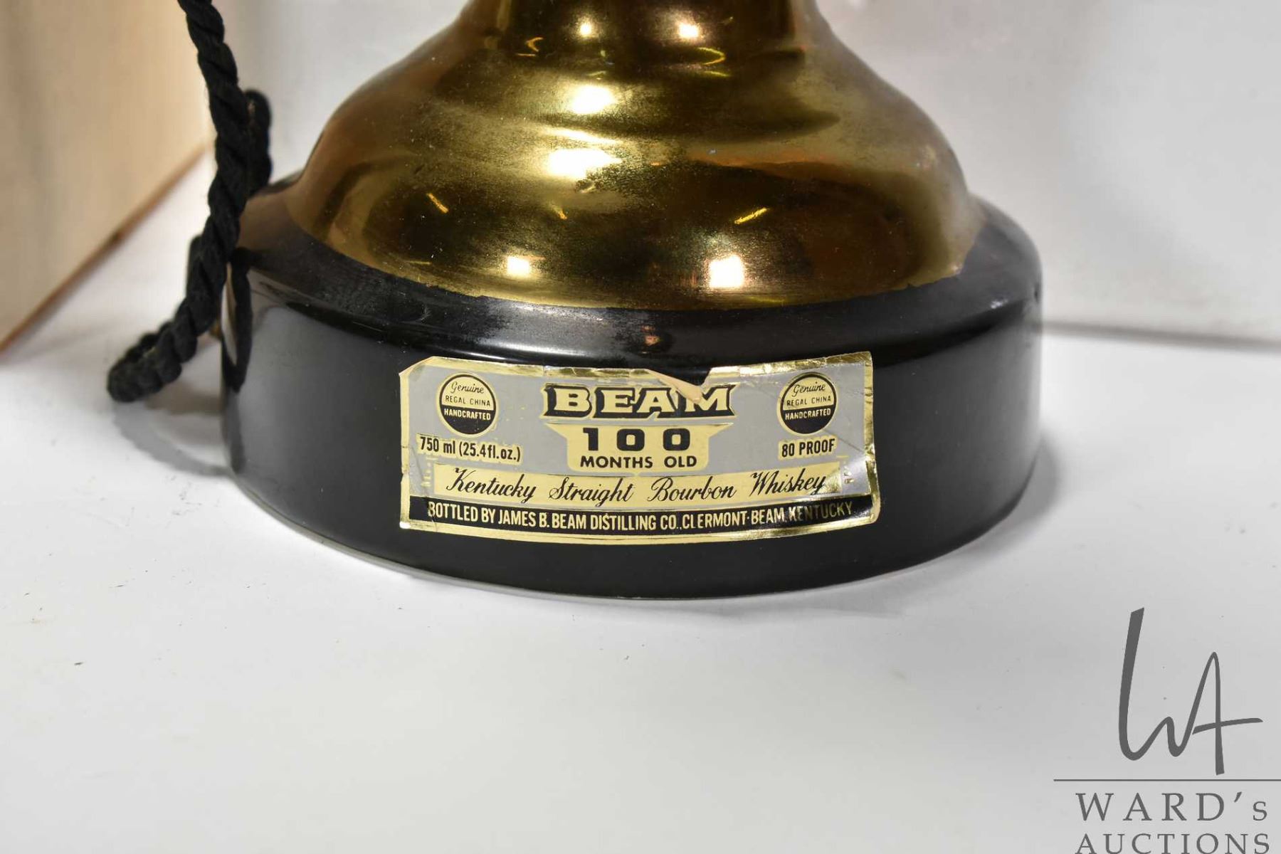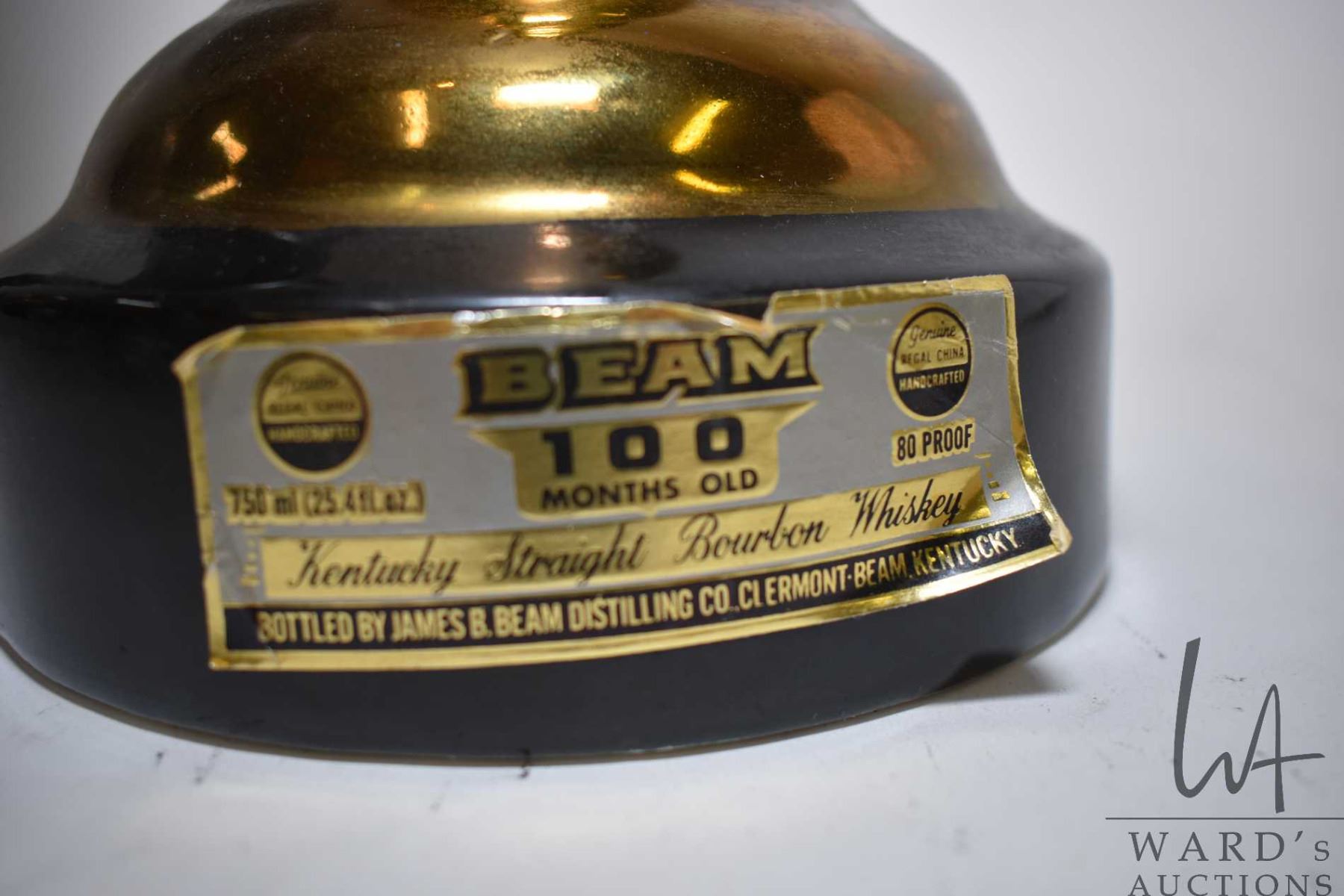Two Jim Beam porcelain phone bottles including 1928 french cradle telephone/ Kentucky Straight Bourbon Whiskey/ 750ml/ 80 proof/ 40% ABV/ with original box, and a 1897 desk set telephone/ Kentucky Straight Bourbon Whiskey/ 750ml/ 80 Proof/ with protective styrofoam insert. Both bottles are seal and unopened