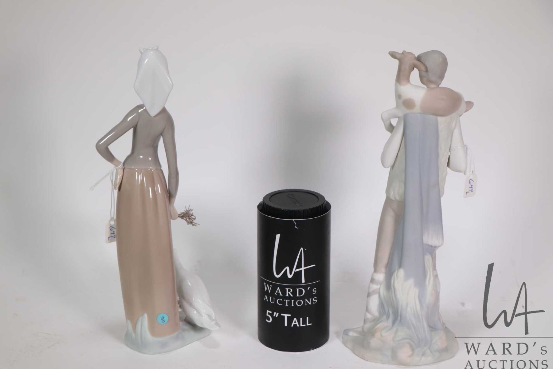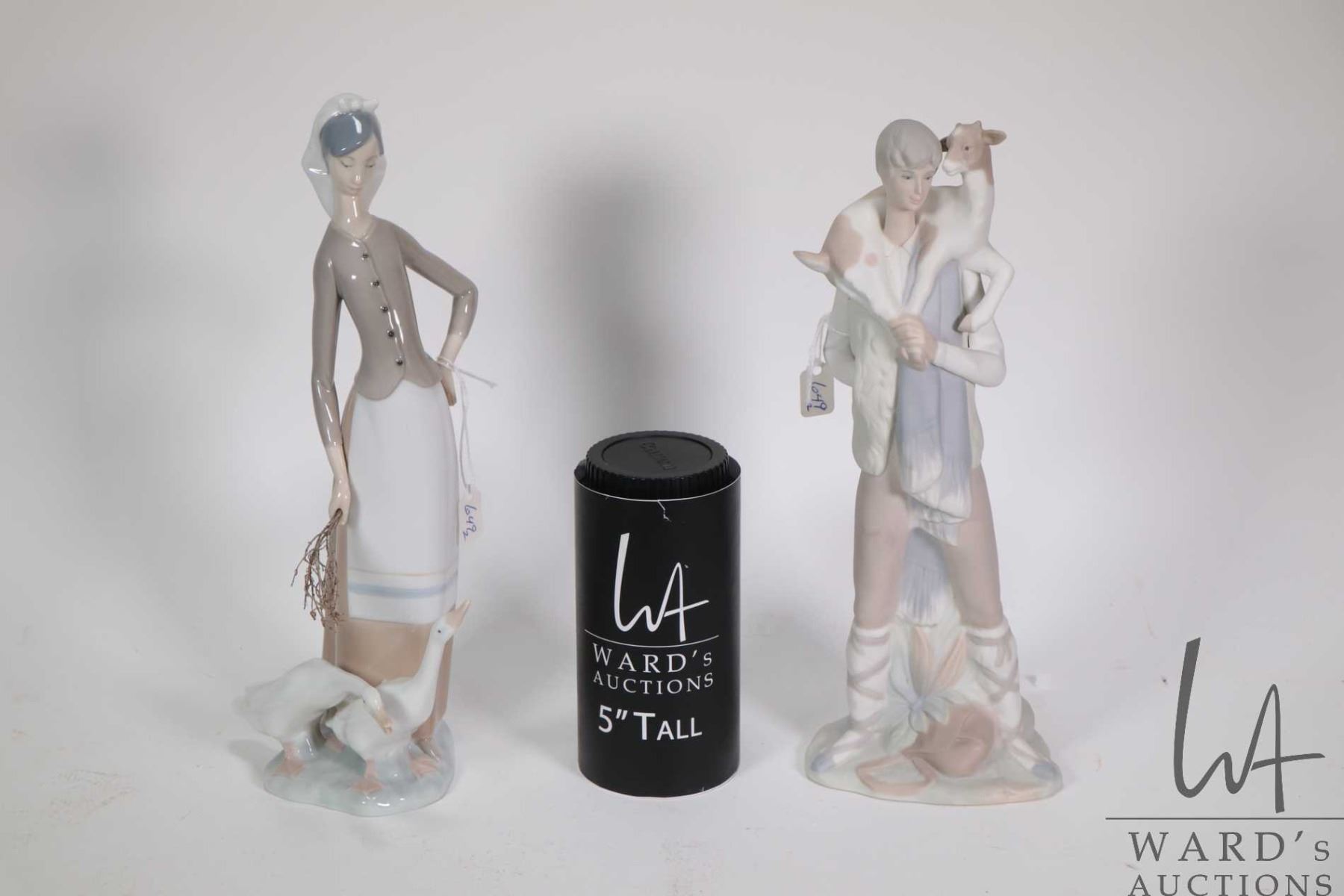 Two Lladro figurines including "Girl with Geese" No. 01035 , 11" in height and "Shepherd Boy" No. 4506, 11" in height