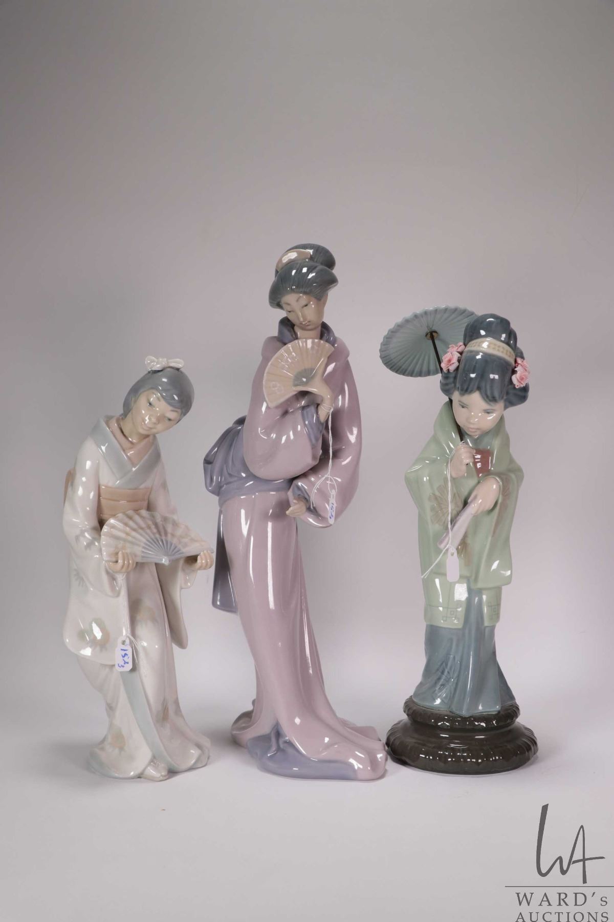 Two Nao figurines including two fan girls and Oriental Spring 12" in height