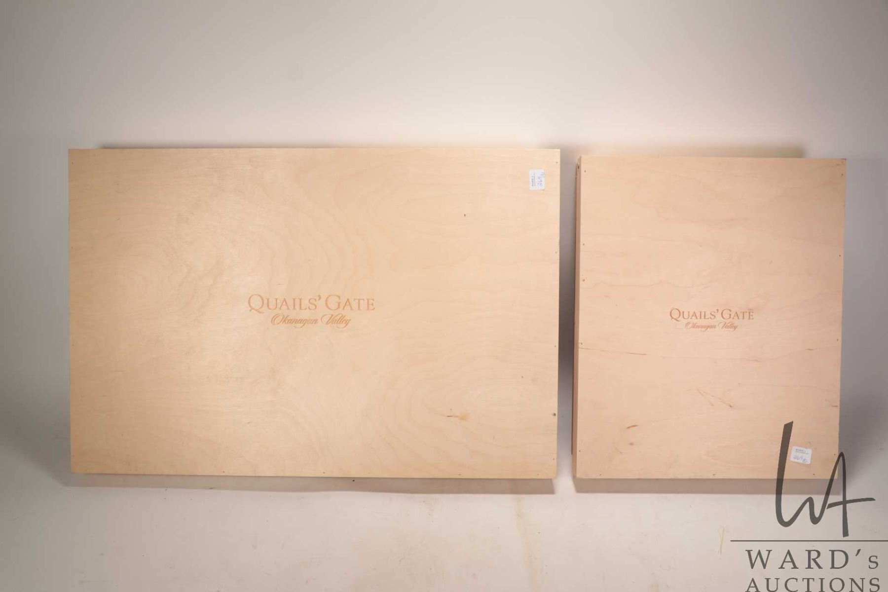 Two Quails' Gate Okanagan Valley wooden wine crates including three bottle and six bottle size