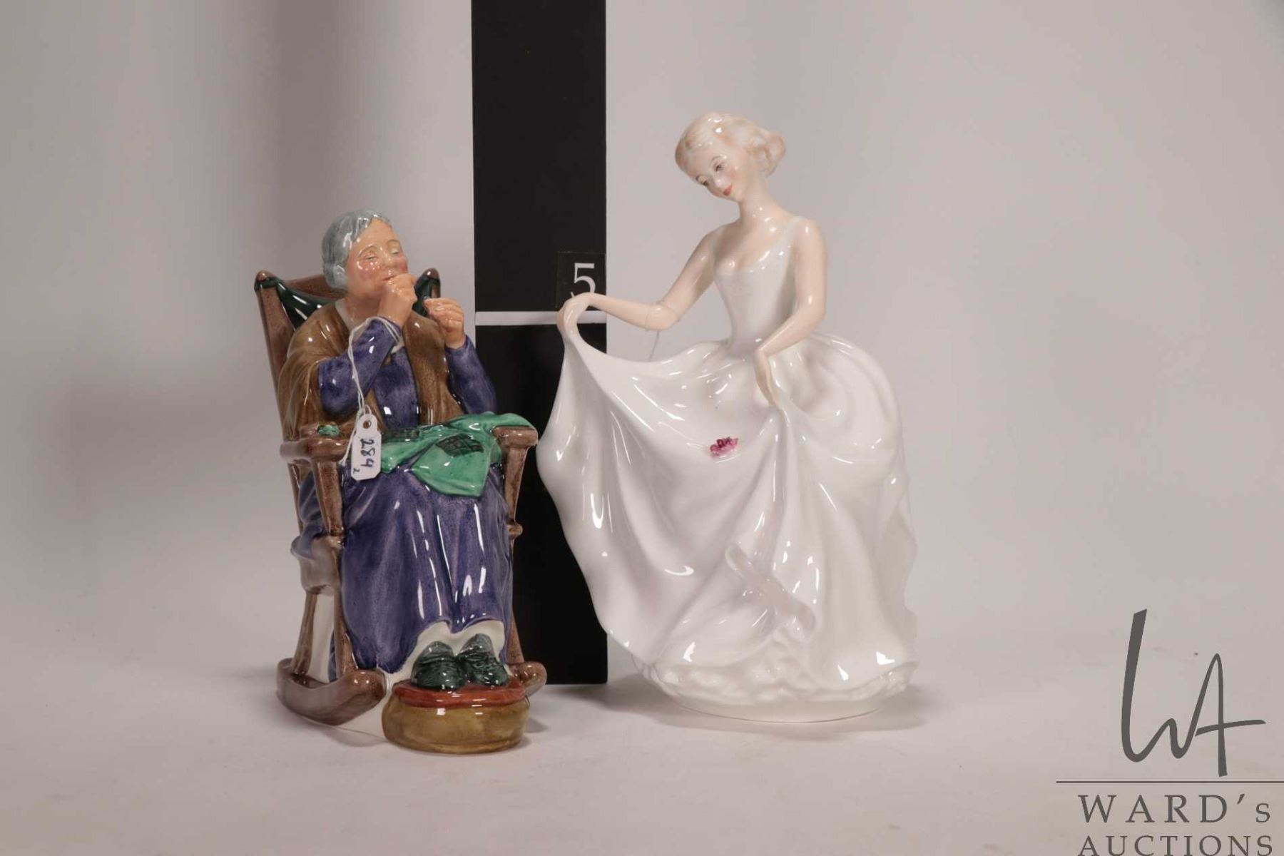 Two Royal Doulton figurines including "A Stitch in Time" HN2352 and "Tracy" HN2736, hand signed by M