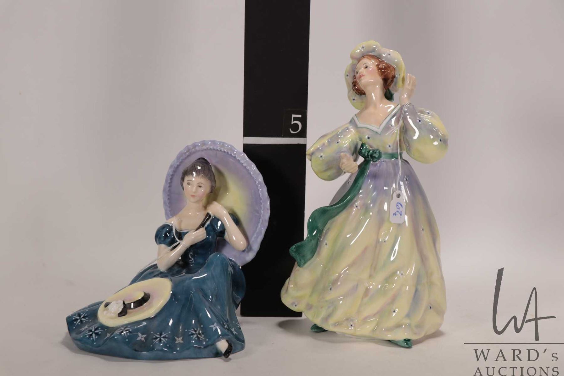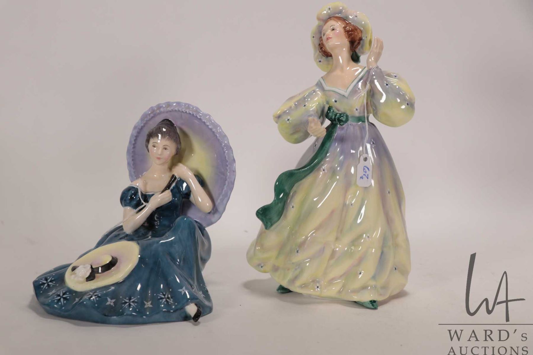 Two Royal Doulton figurines including "Grand Manner" HN2723 and "Pensive Moments" HN2704