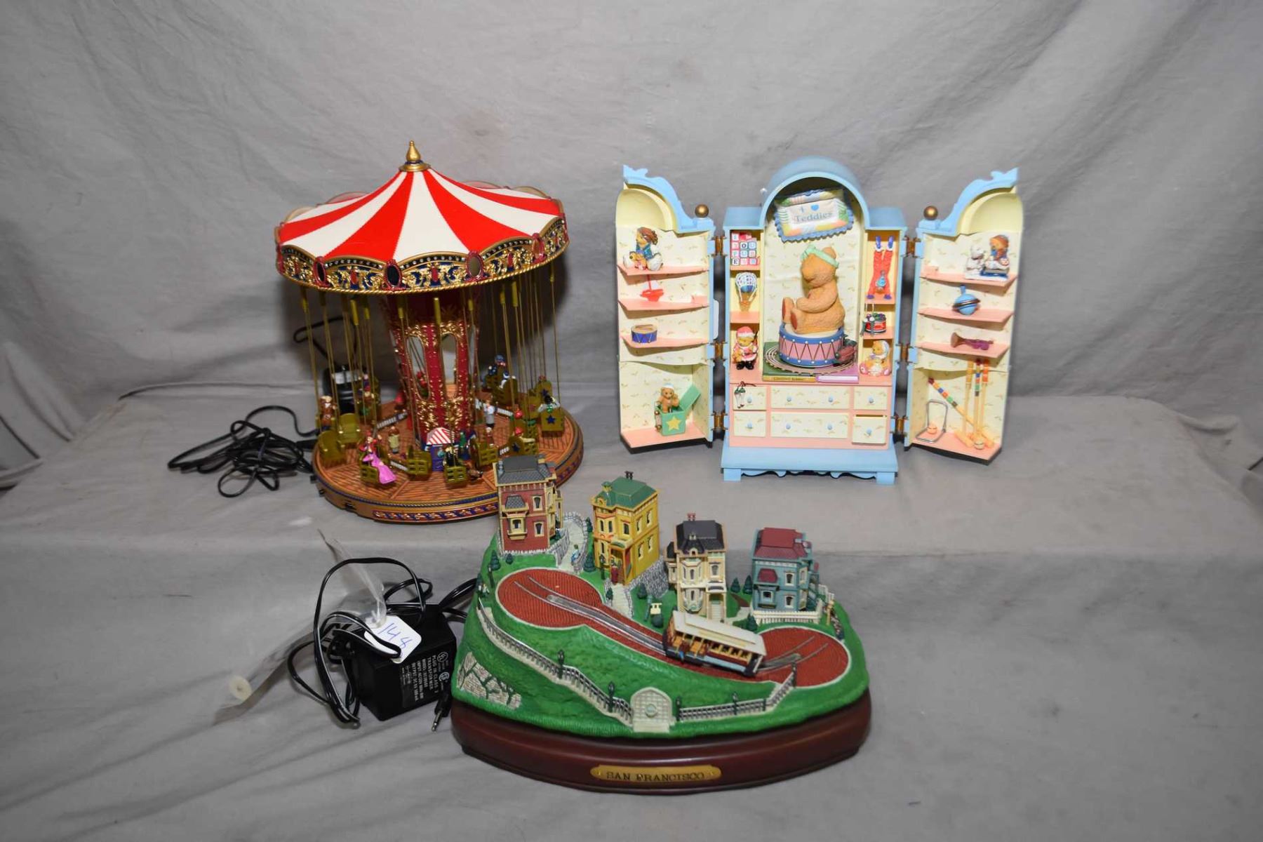 Two animatronic musical collectibles including "Swing Carousel" and and Ensco "My Favourite Things" plus a Ensco " I Left my heart in San Francisco" non-working musical collectibles