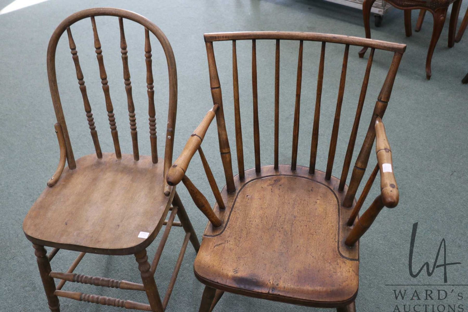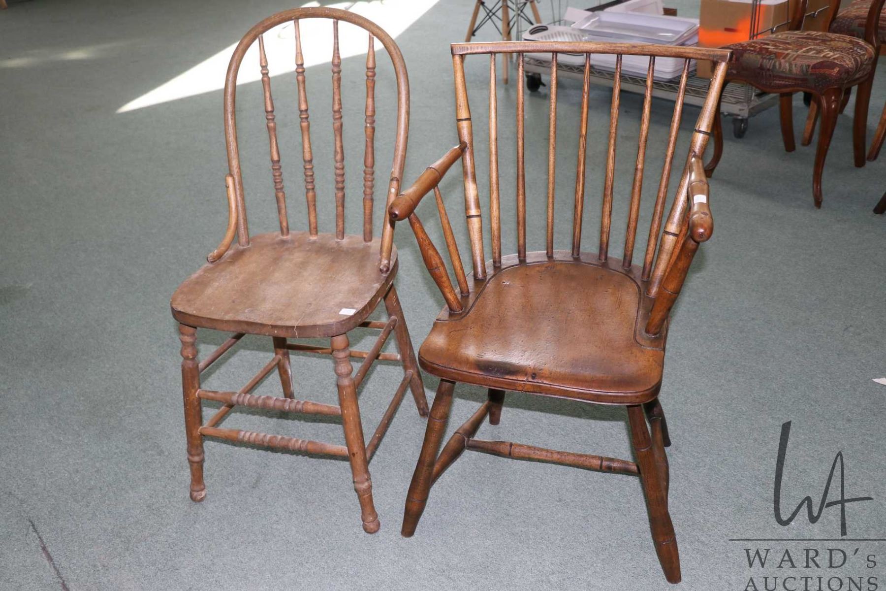 Two antique chairs including spindle back arm chair and bentwood side chair