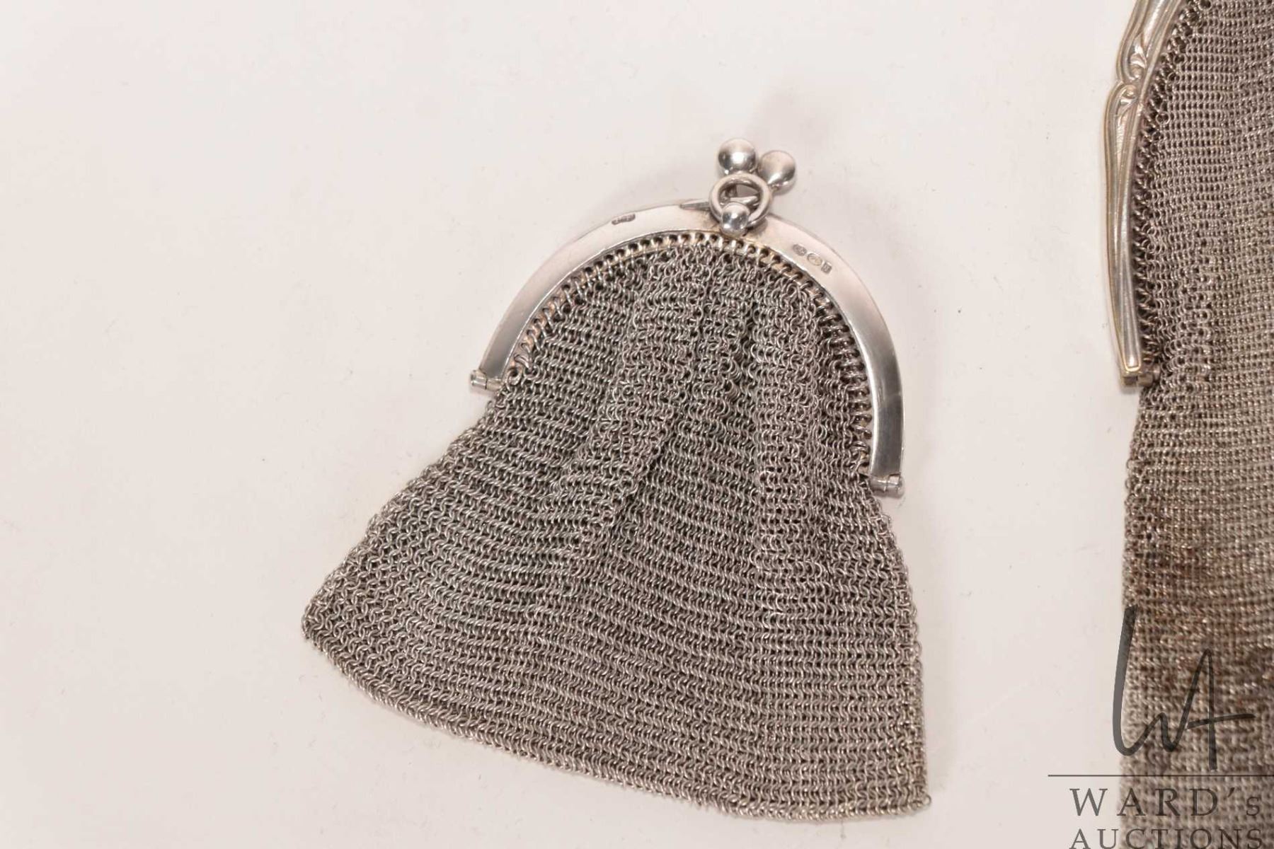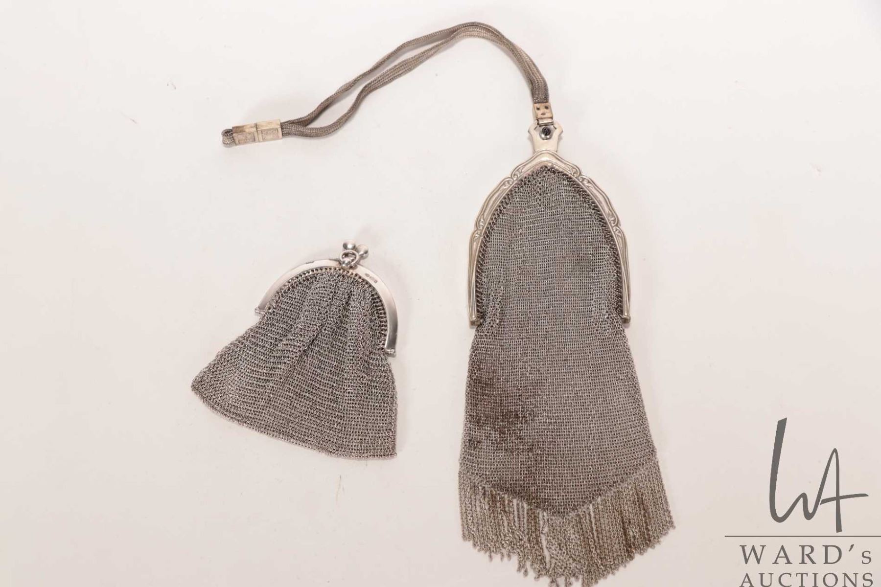 Two antique silver mesh purses including one set with blue cabochon stone, no marks seen